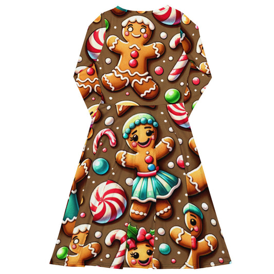 Whimsical Winter Wear Long Sleeve Midi Dress