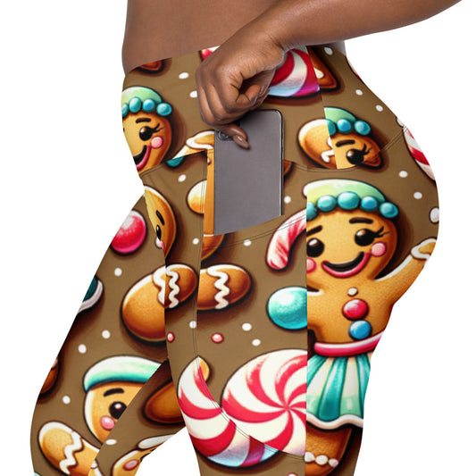 Whimsical Winter Wear Crossover Leggings with Pockets