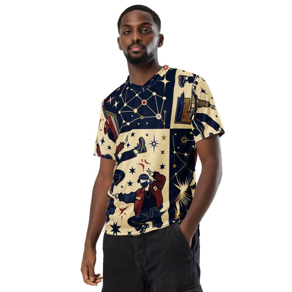 Discover the perfect fusion of style and sustainability with Hallyu Vibe Couture sports jersey. Crafted from 100% recycled polyester fabric, this jersey offers unparalleled breathability and moisture-wicking capabilities, ensuring you stay comfortable during every activity. The thoughtfully designed double-layered v-neck collar adds a touch of sophistication, elevating your athletic ensemble.