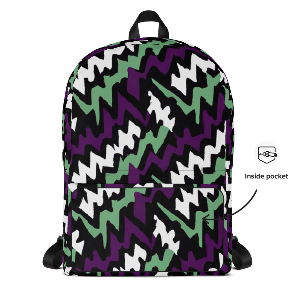 - Large inside pocket with a separate compartment for a 15” laptop, front pocket with a zipper, and a hidden pocket with zipper on the back of the bag