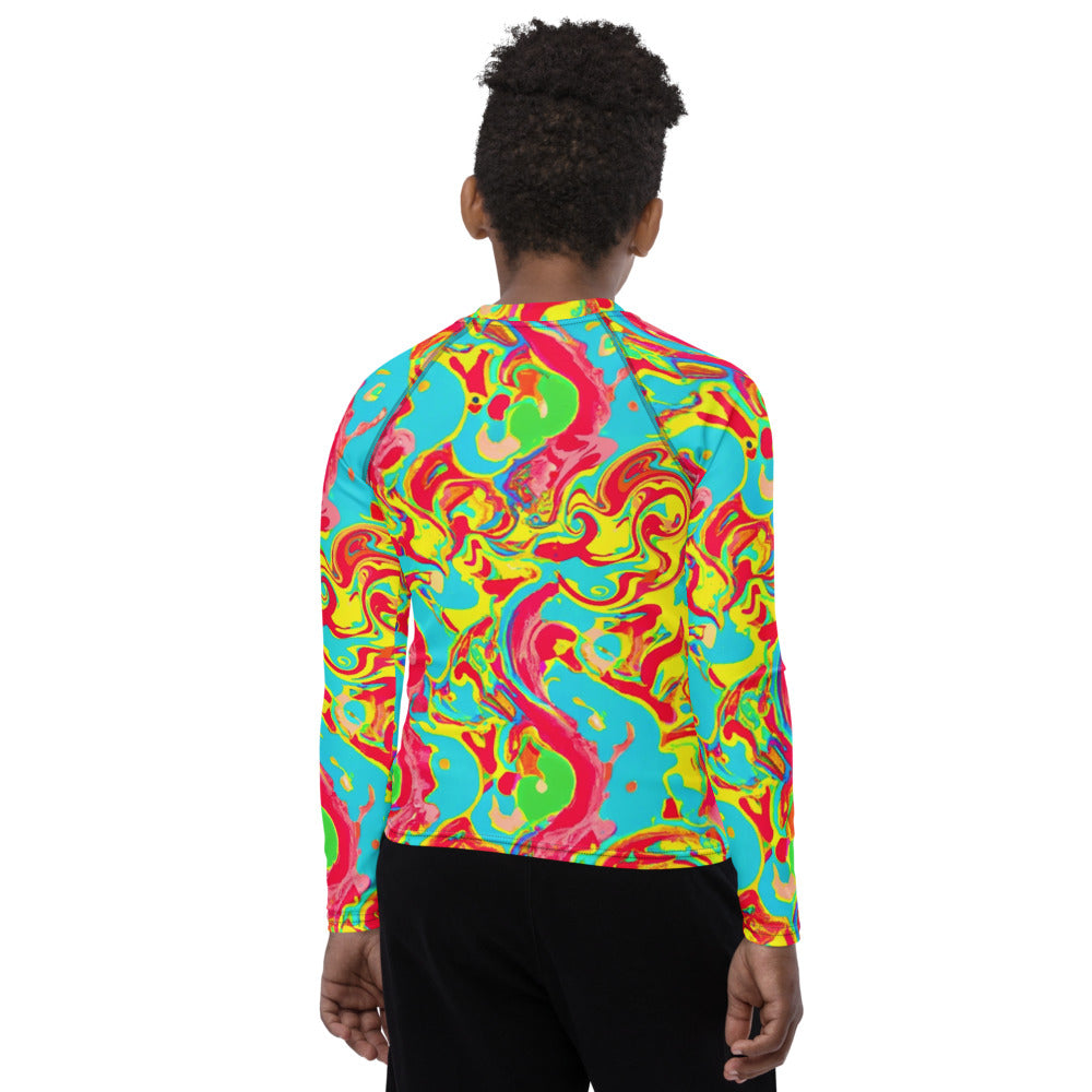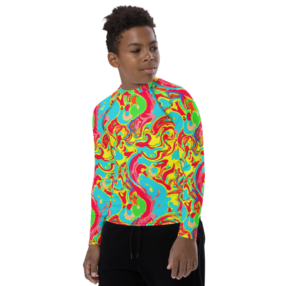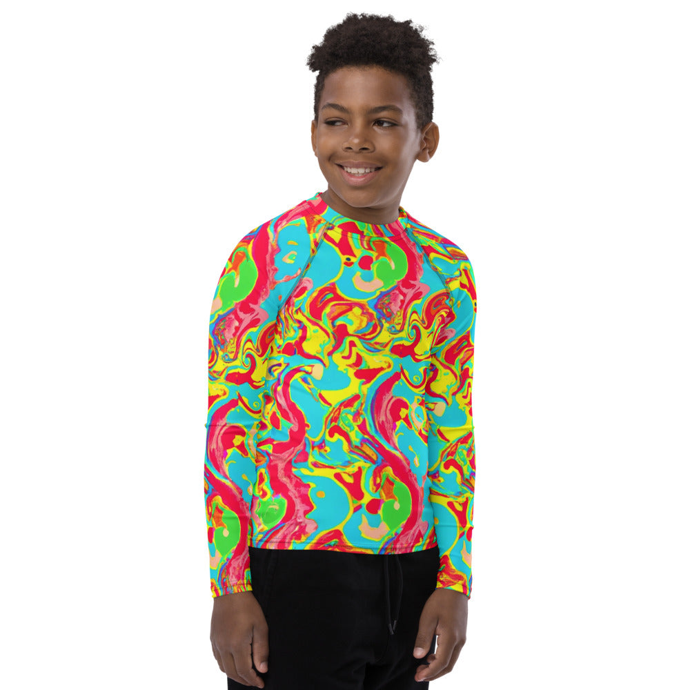 Introducing the Regal Rash Guard, a colorful and soft protective garment tailored for active teens who love water and contact sports. This rash guard offers a longer body and sleeves to provide superior skin protection. Its fitted design ensures it remains non-restrictive, even during the most intense activities.