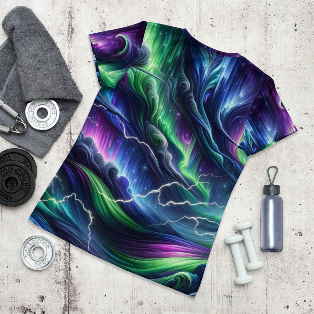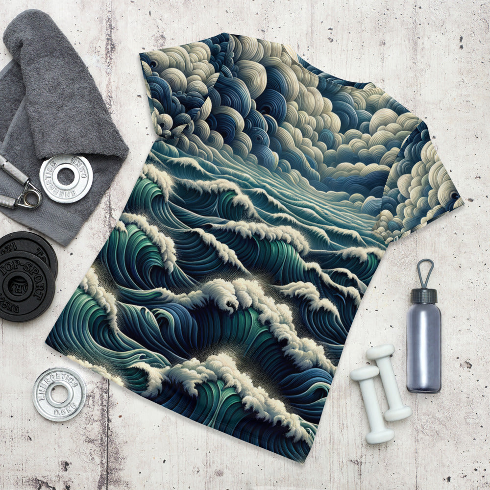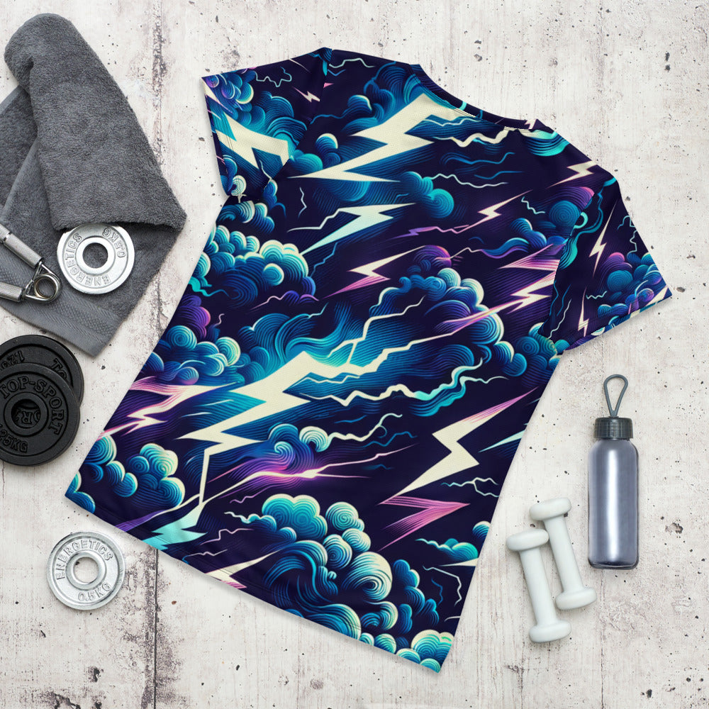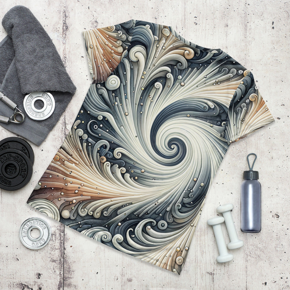 The Tempest Threads t-shirt seamlessly combines comfort and style with its sports mesh fabric designed for moisture management, keeping athletes dry and comfortable during exercise. Add a unique statement piece to your wardrobe with this finely crafted shirt.