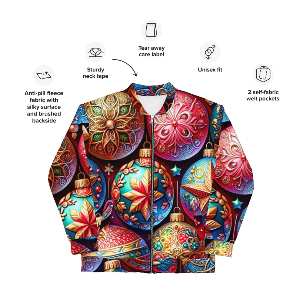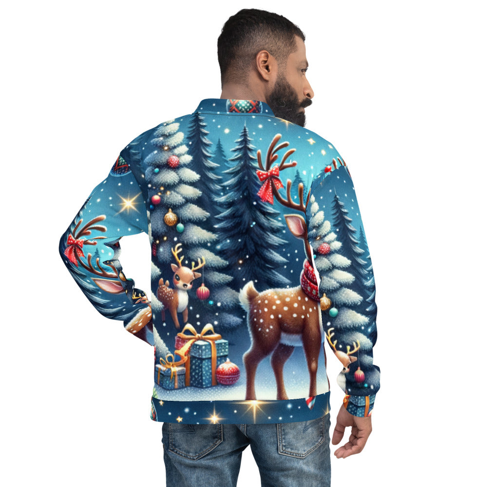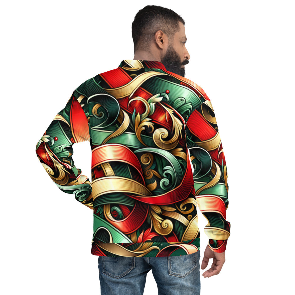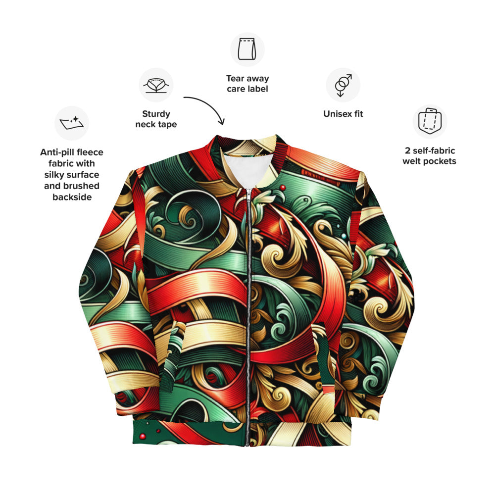 Add a touch of festive flair to your wardrobe with this vibrant Bomber Jacket from the Whimsical Winter Wear collection. Perfect for the Christmas season, you can wear it over a basic T-shirt or layer it on top of a cozy hoodie—it looks incredible either way. With a brushed fleece interior and a relaxed unisex fit, this Bomber Jacket is straight from your dreams, so make sure to get yours now!