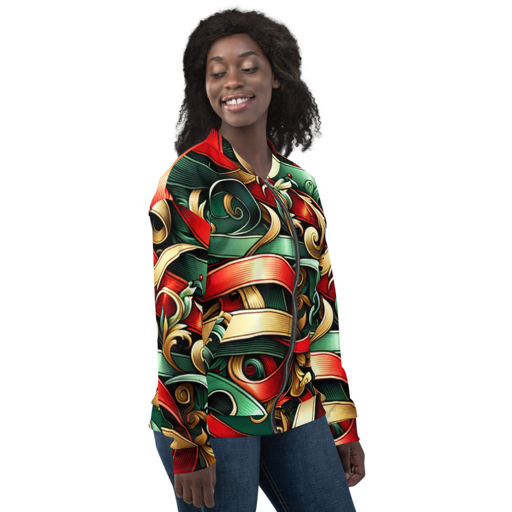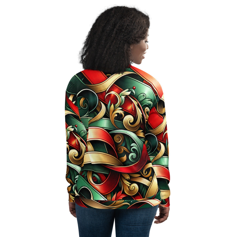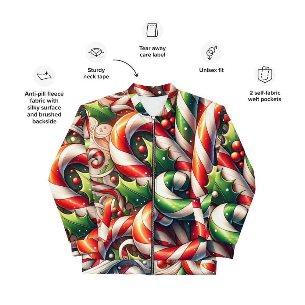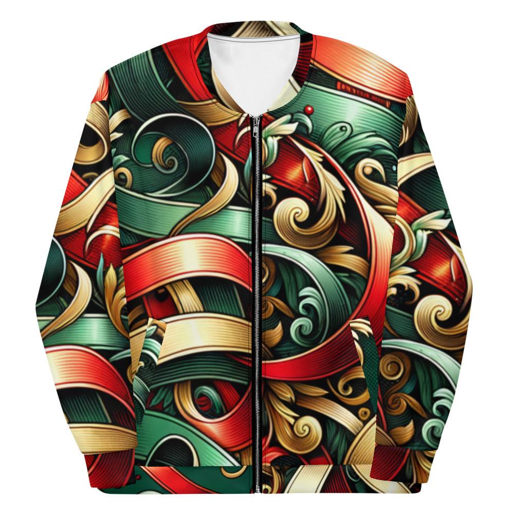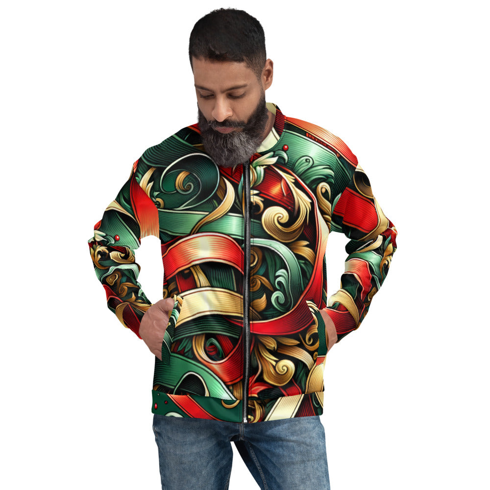 Add a touch of festive flair to your wardrobe with this vibrant Bomber Jacket from the Whimsical Winter Wear collection. Perfect for the Christmas season, you can wear it over a basic T-shirt or layer it on top of a cozy hoodie—it looks incredible either way. With a brushed fleece interior and a relaxed unisex fit, this Bomber Jacket is straight from your dreams, so make sure to get yours now!