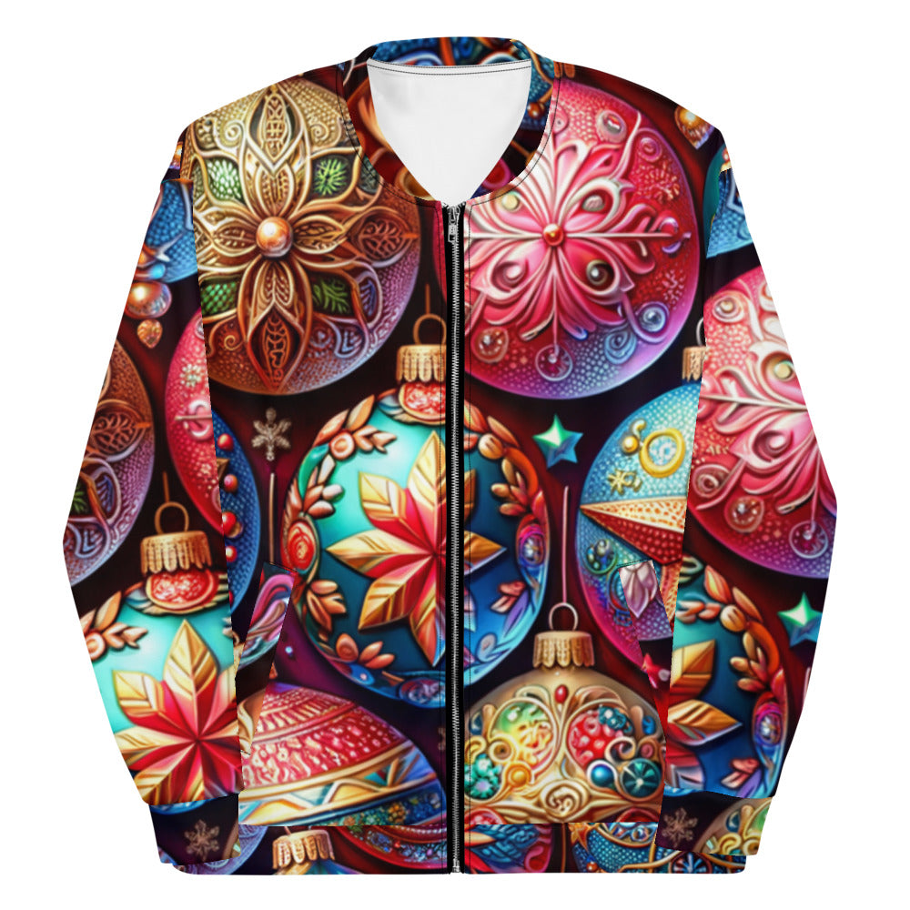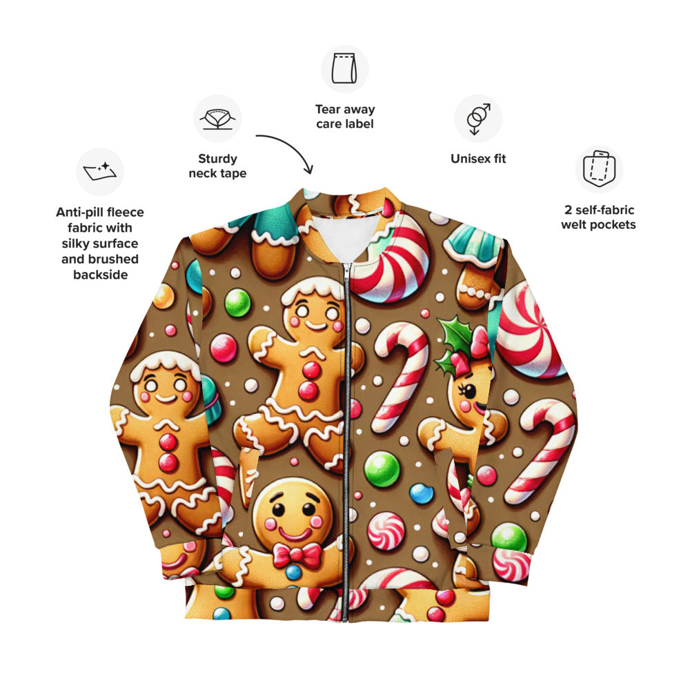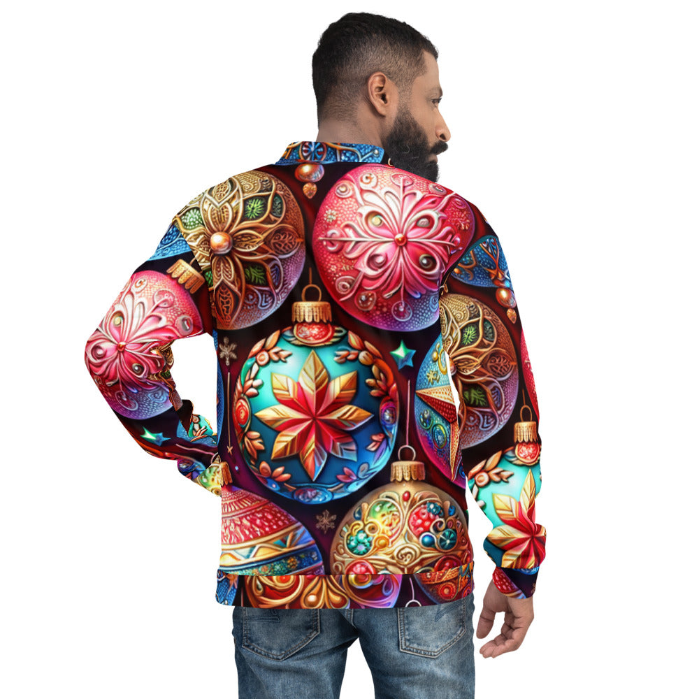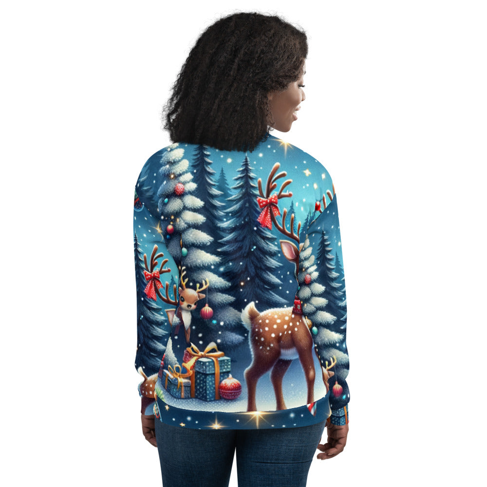 Add a touch of festive flair to your wardrobe with this vibrant Bomber Jacket from the Whimsical Winter Wear collection. Perfect for the Christmas season, you can wear it over a basic T-shirt or layer it on top of a cozy hoodie—it looks incredible either way. With a brushed fleece interior and a relaxed unisex fit, this Bomber Jacket is straight from your dreams, so make sure to get yours now!