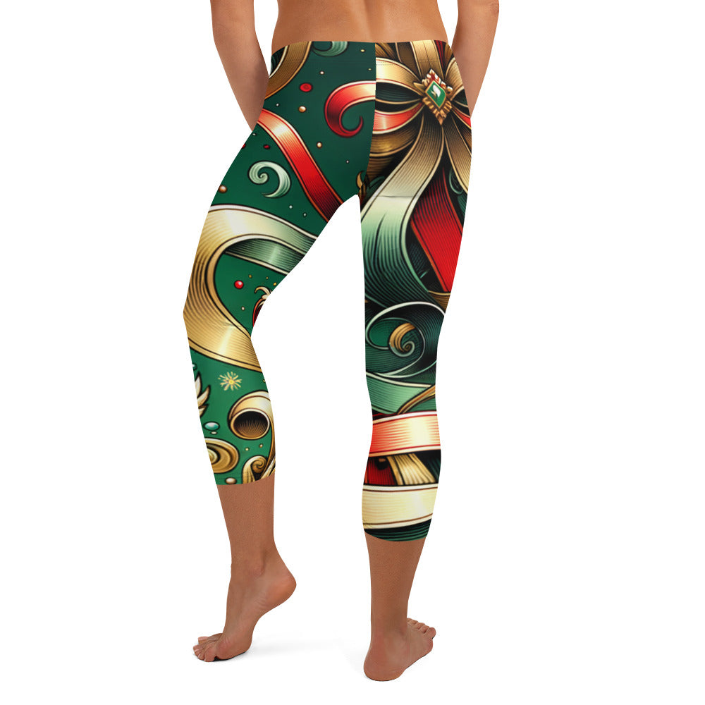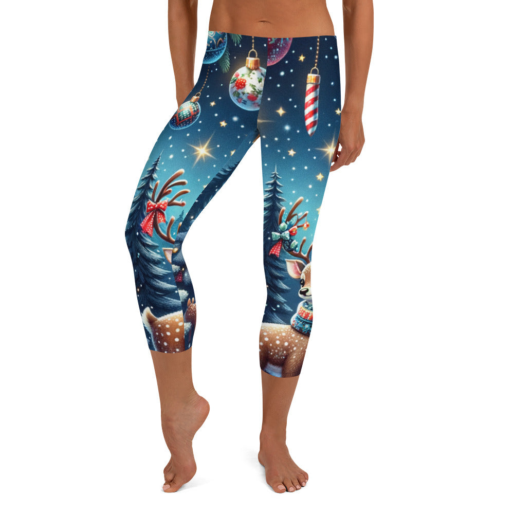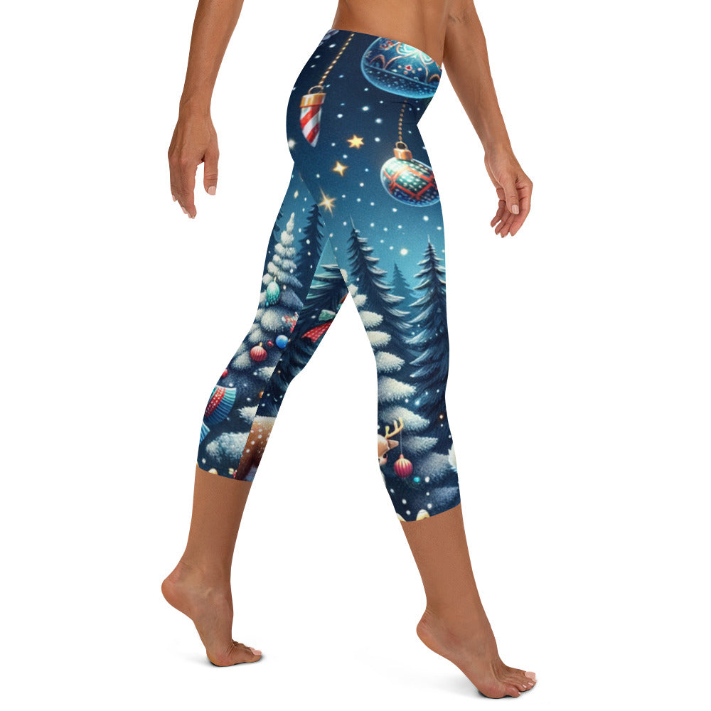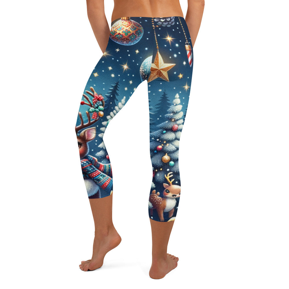 Experience unparalleled comfort and style this Christmas with our Whimsical Winter Wear capri leggings, created to seamlessly blend with your festive ensemble.