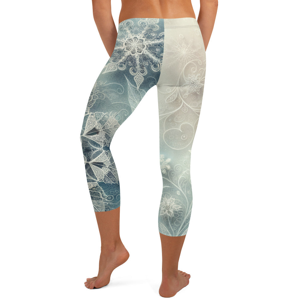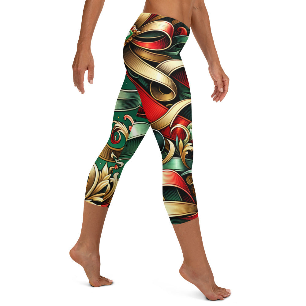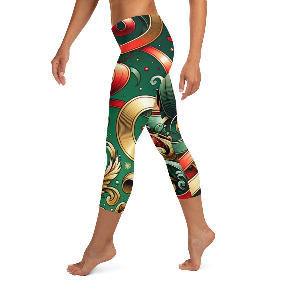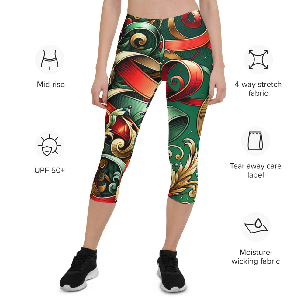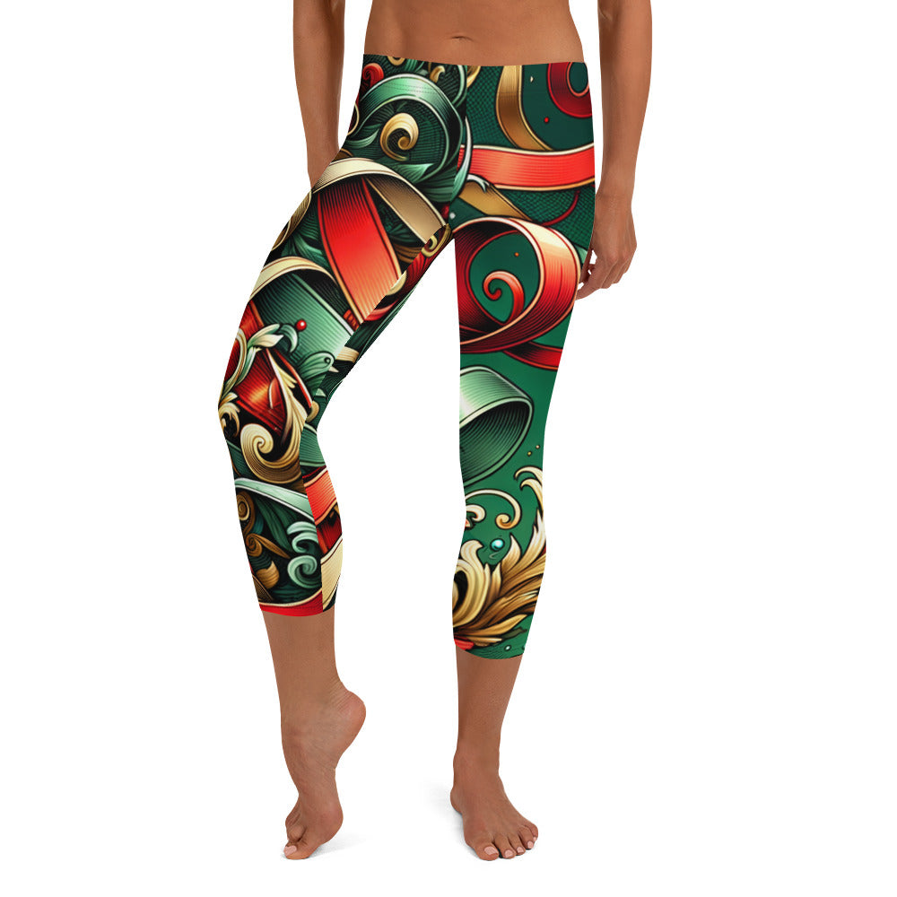 Experience unparalleled comfort and style this Christmas with our Whimsical Winter Wear capri leggings, created to seamlessly blend with your festive ensemble.