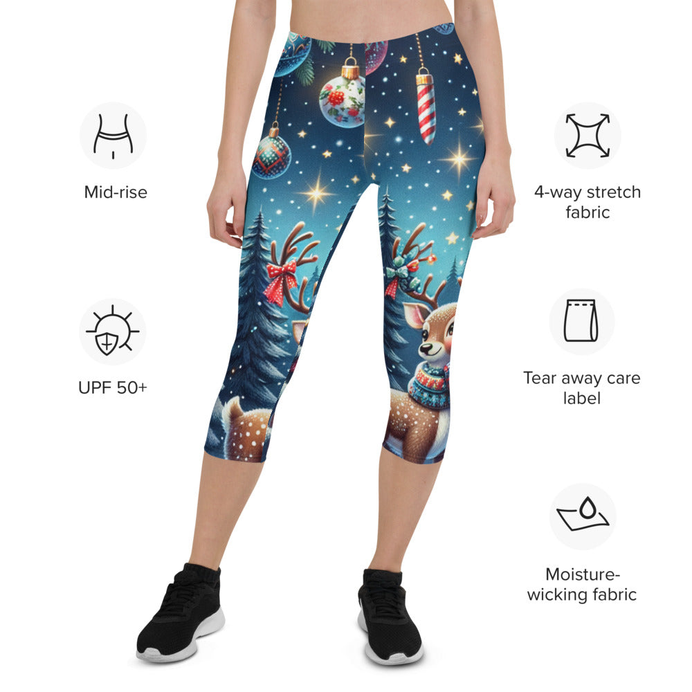 Step into the festive spirit of Christmas with our Whimsical Winter Wear collection's super soft and comfortable capri leggings. These leggings are designed to keep you cozy while adding a touch of holiday cheer to your wardrobe.