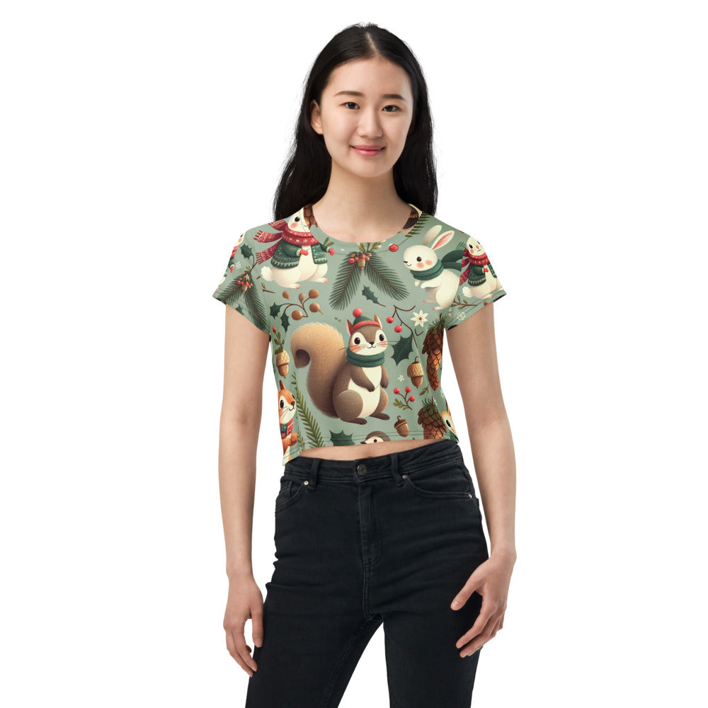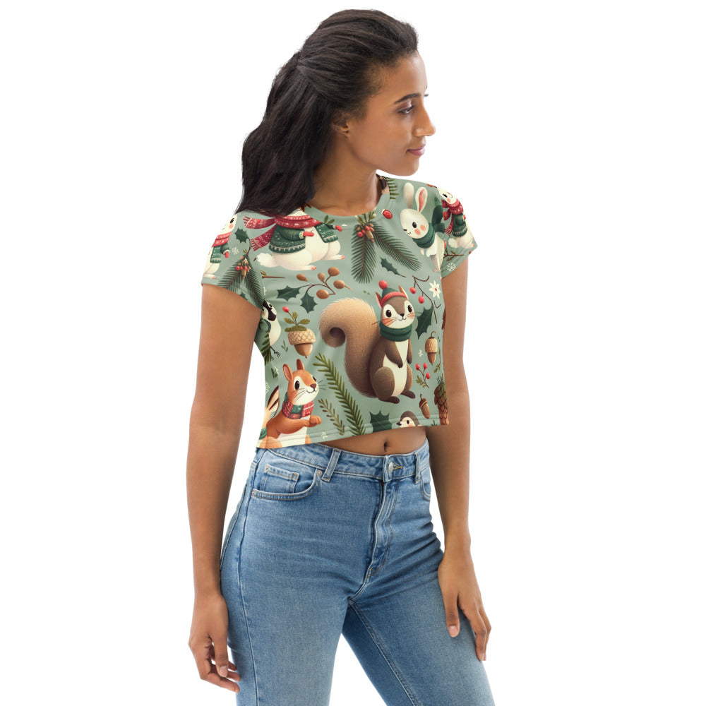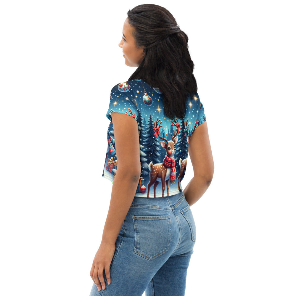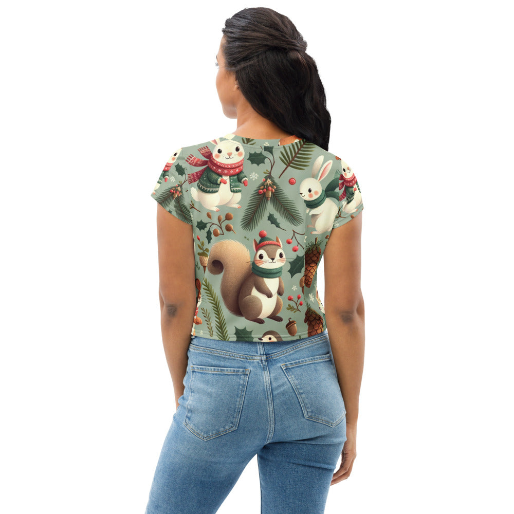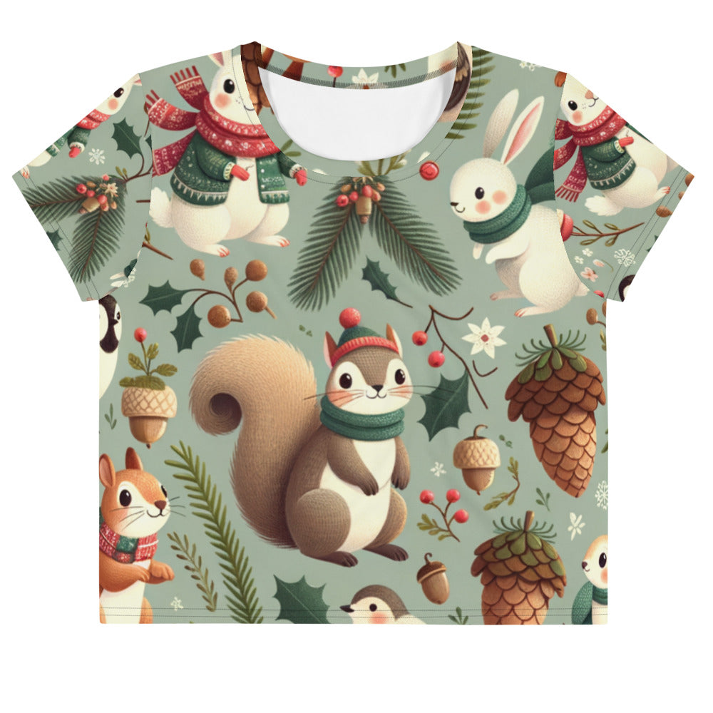 Looking for your next wardrobe favorite? Well, look no further because the Whimsical Winter Wear crop tee is crafted to fit you just right. To top that off, the unique design is definitely worth showing off, so don't hesitate to own one of these tees— they're meant to be adored this Christmas season.