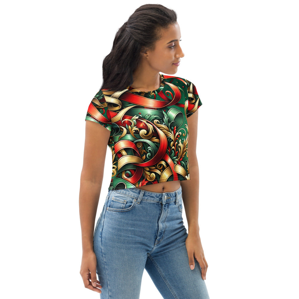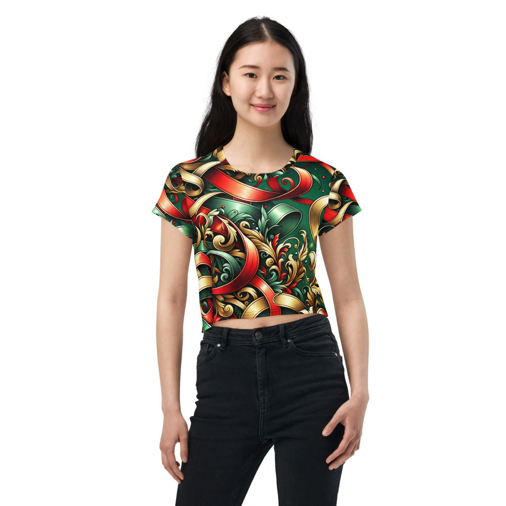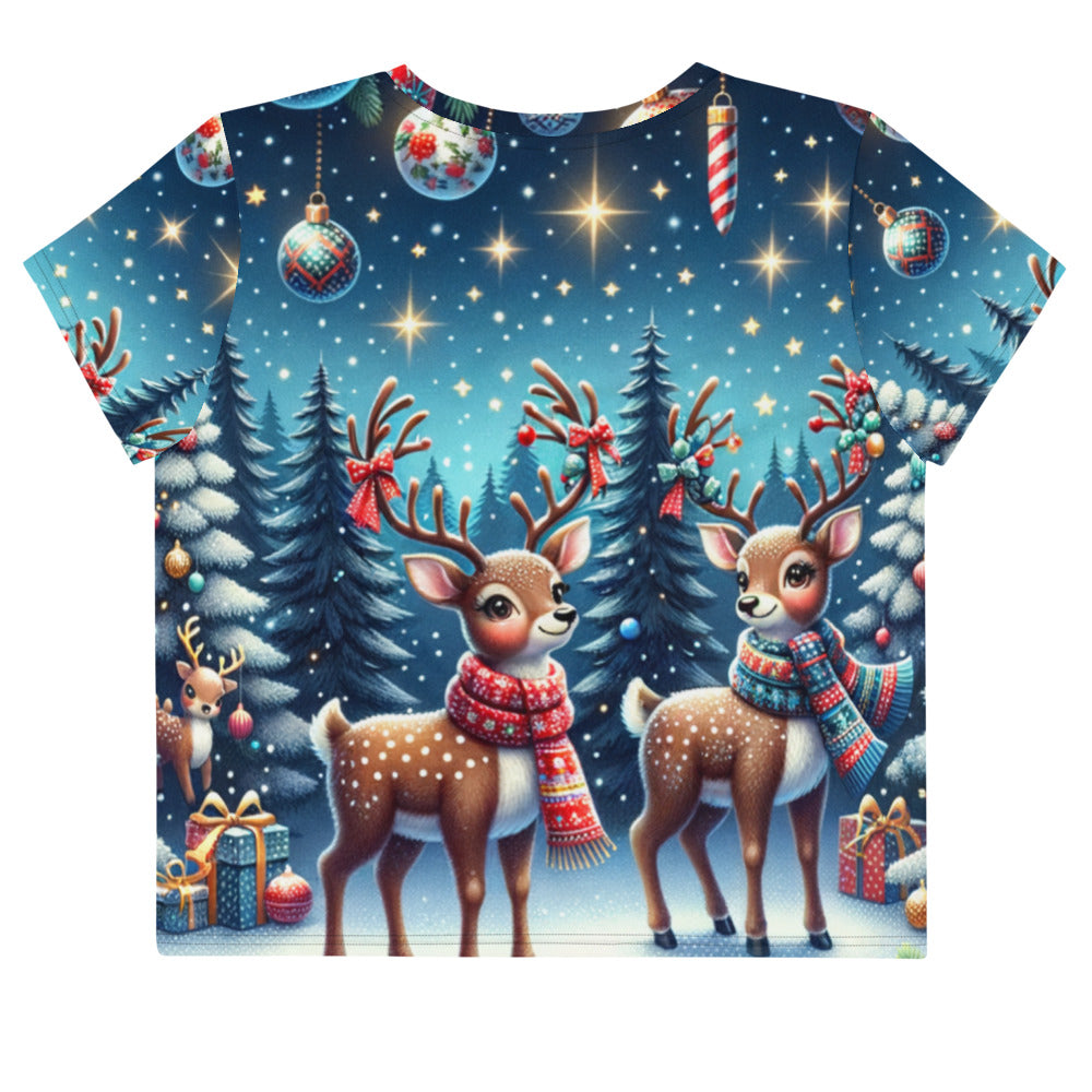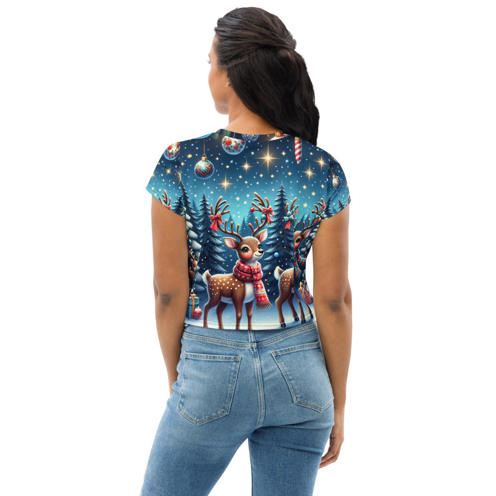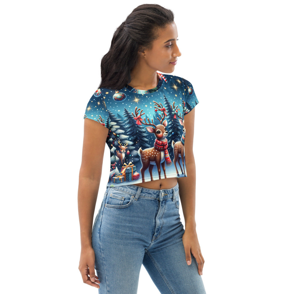 Looking for your next wardrobe favorite? Well, look no further because the Whimsical Winter Wear crop tee is crafted to fit you just right. To top that off, the unique design is definitely worth showing off, so don't hesitate to own one of these tees— they're meant to be adored this Christmas season.
