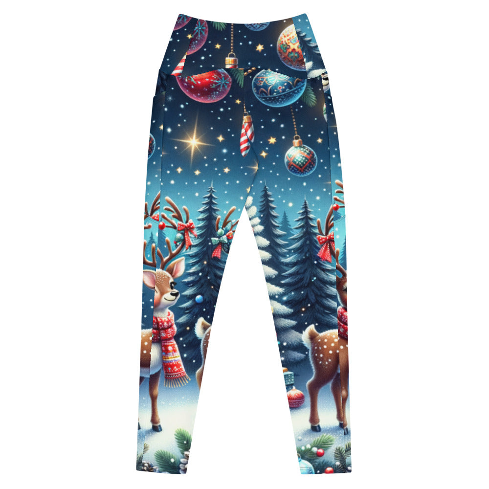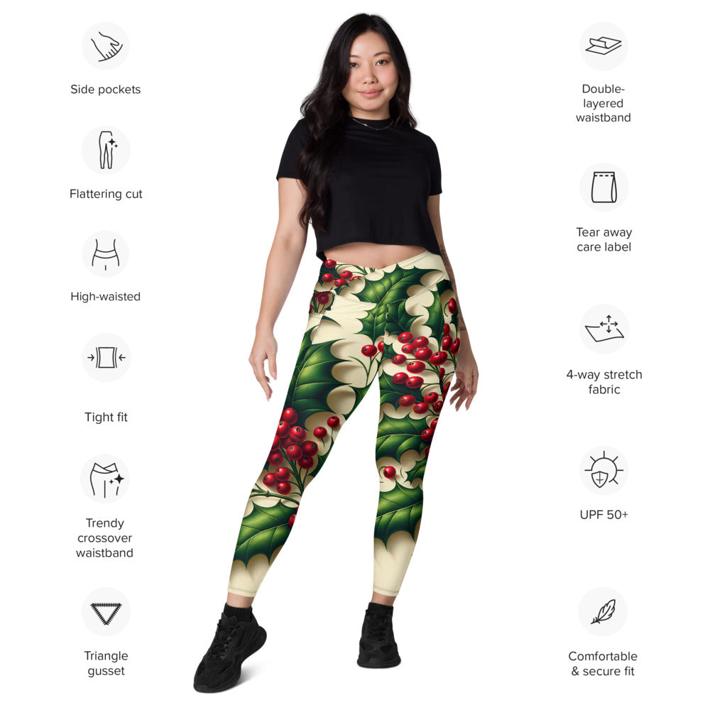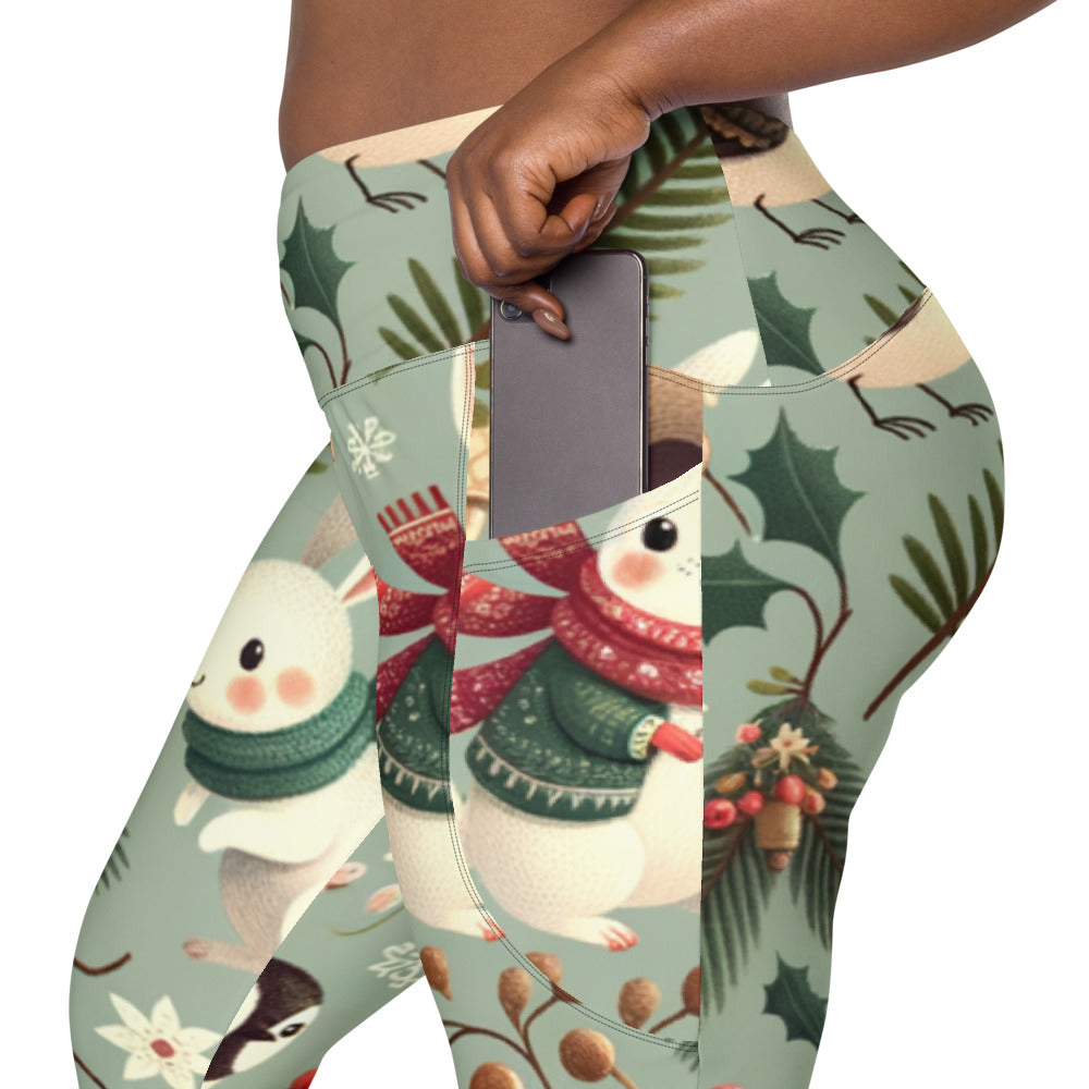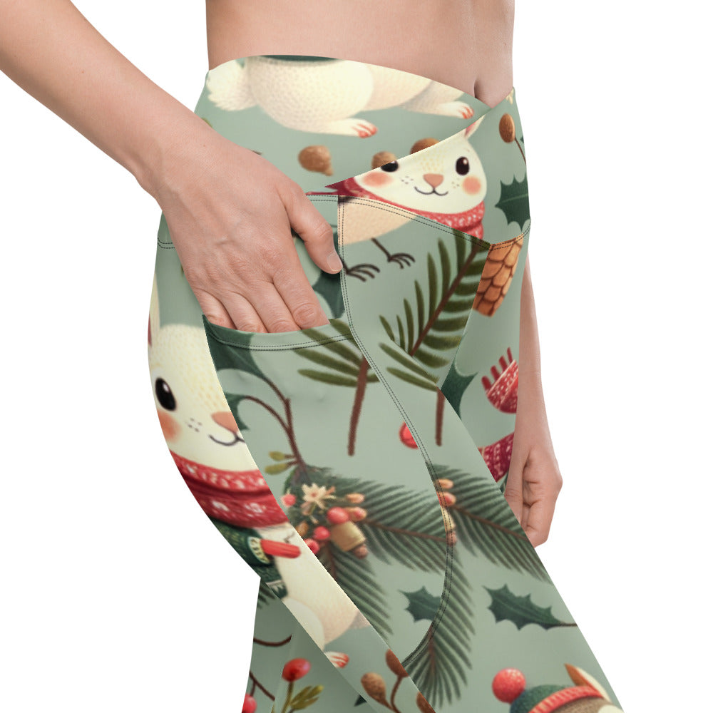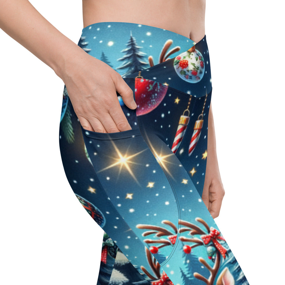 Whimsical Winter Wear Crossover Leggings with Pockets