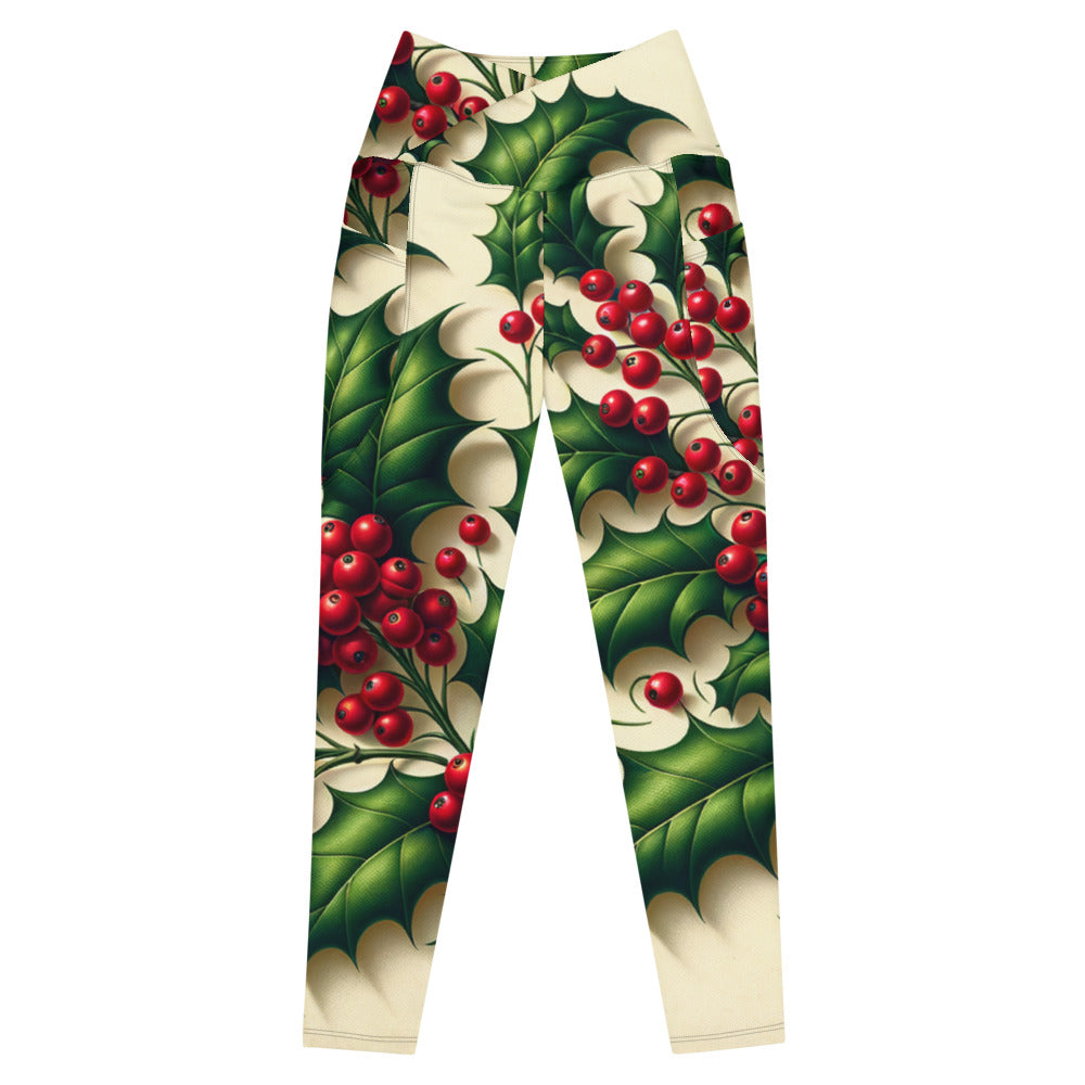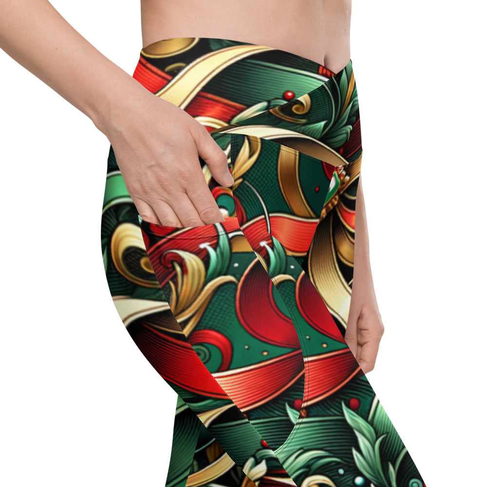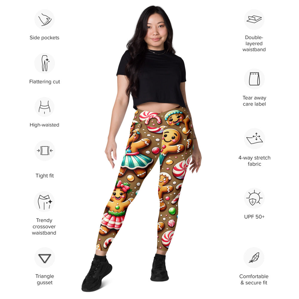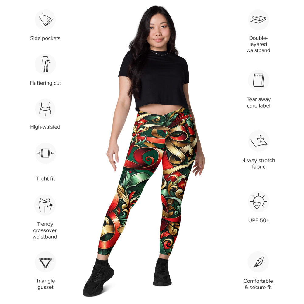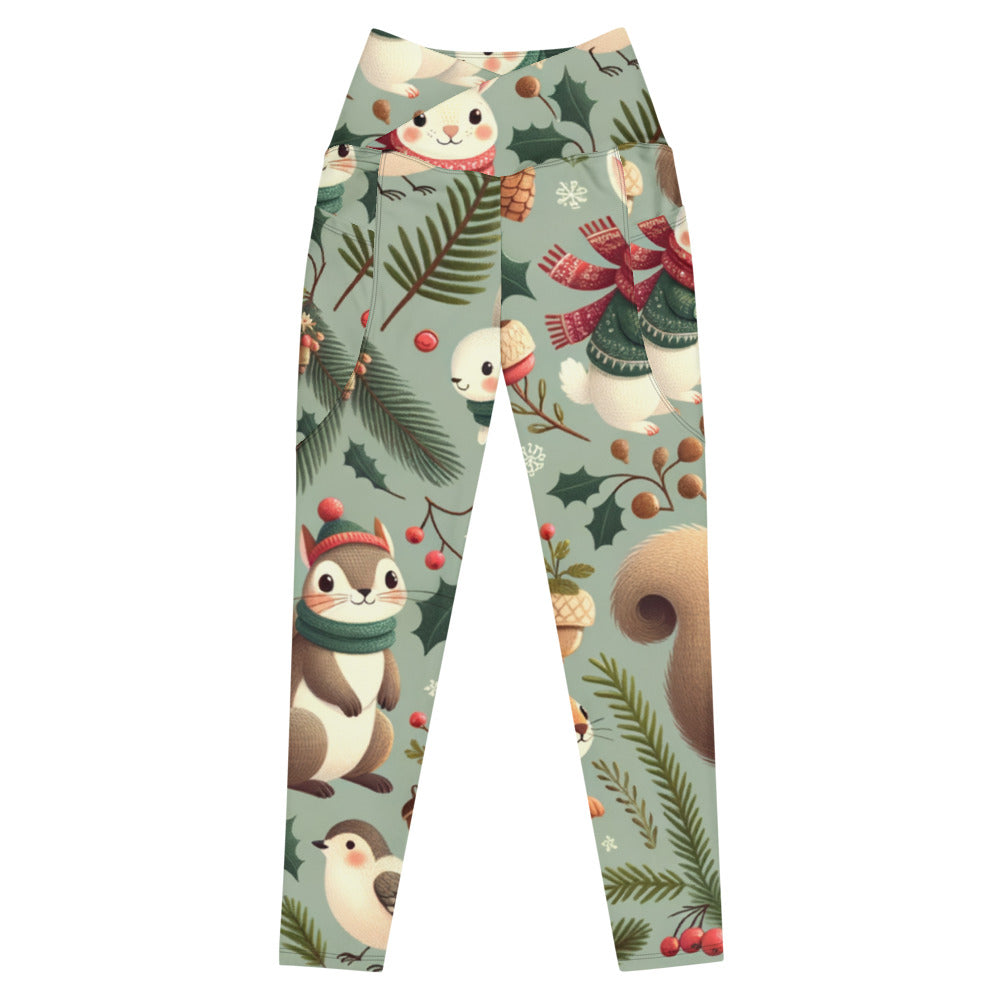 Whimsical Winter Wear Crossover Leggings with Pockets