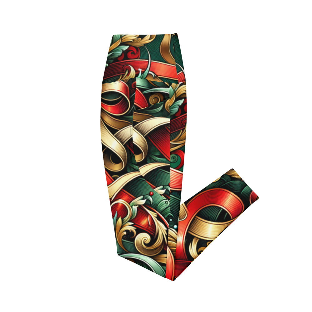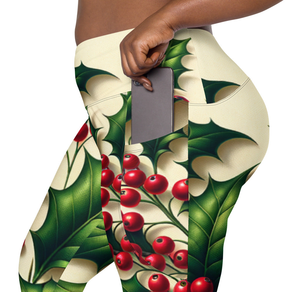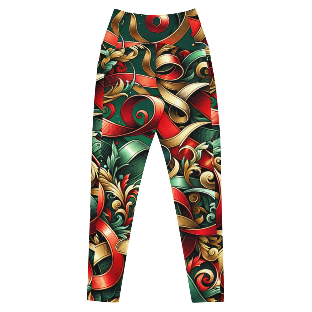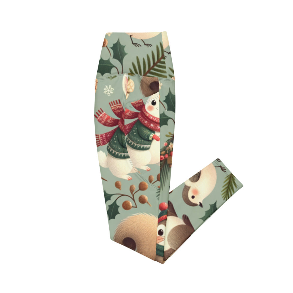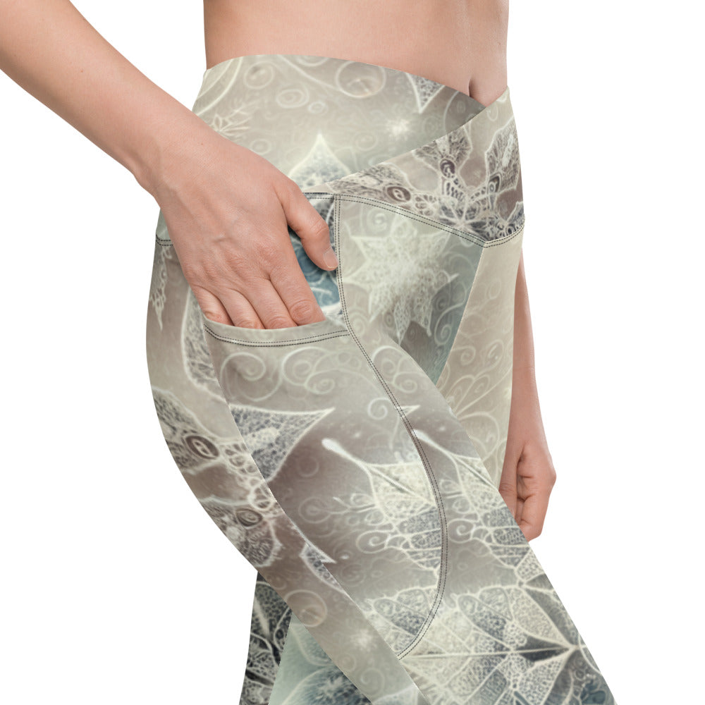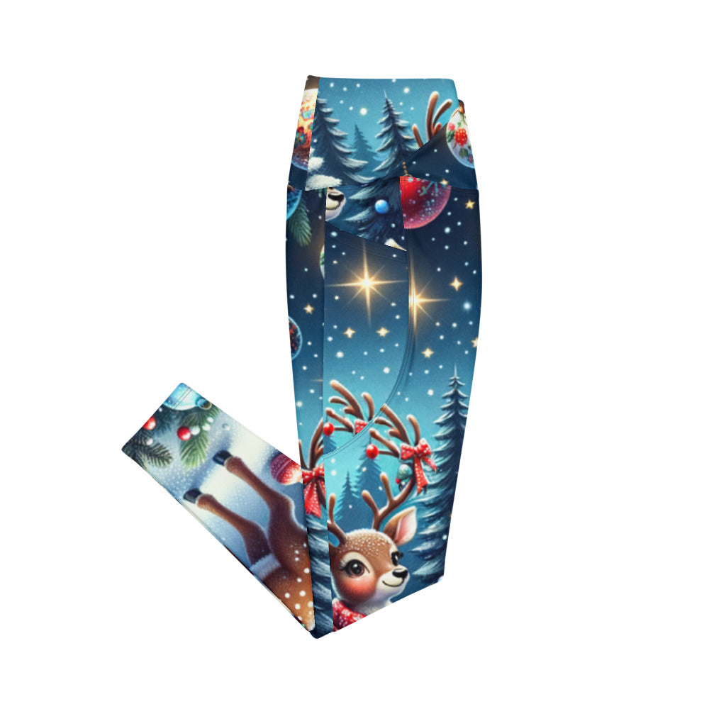 Whimsical Winter Wear Crossover Leggings with Pockets