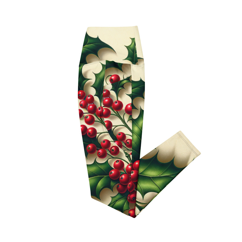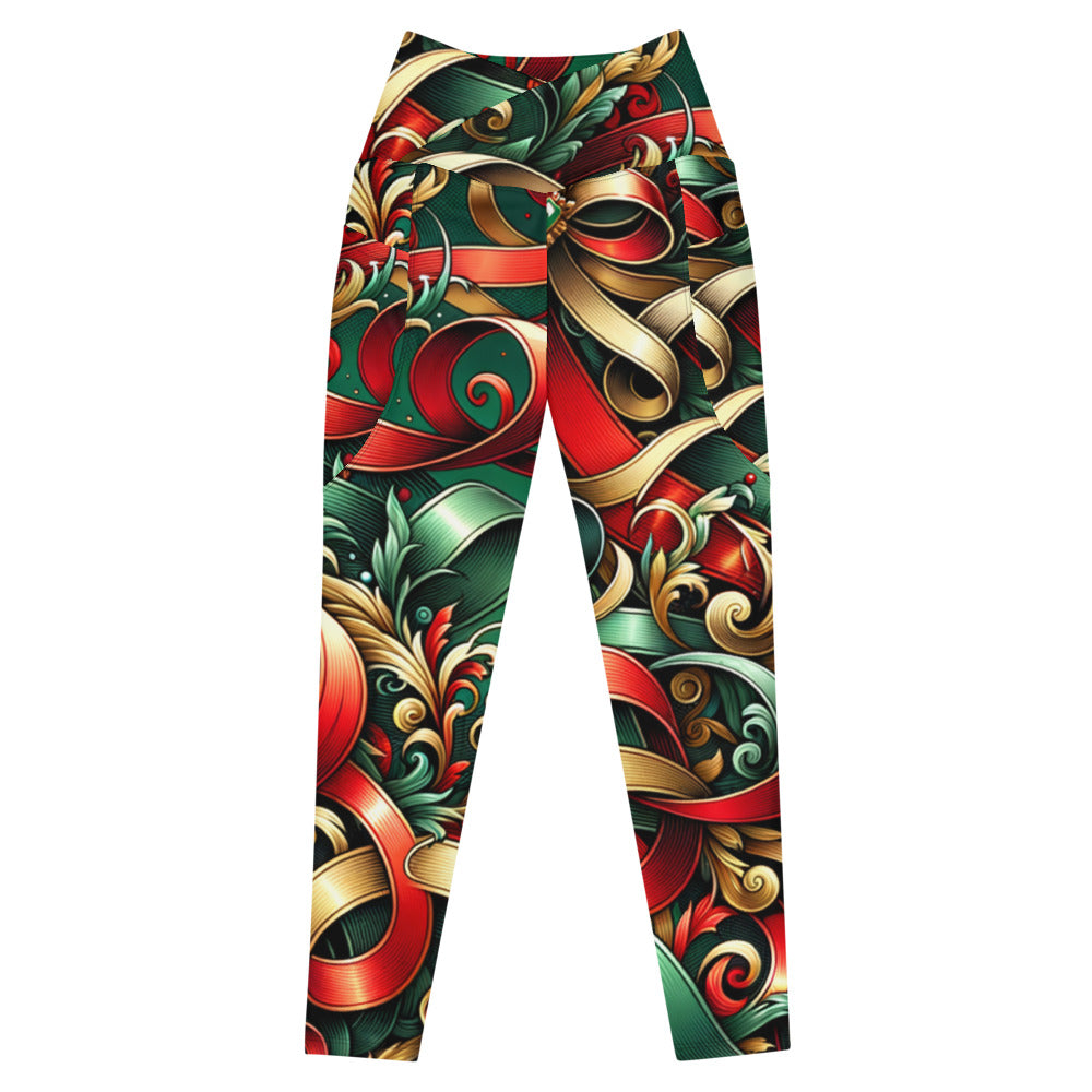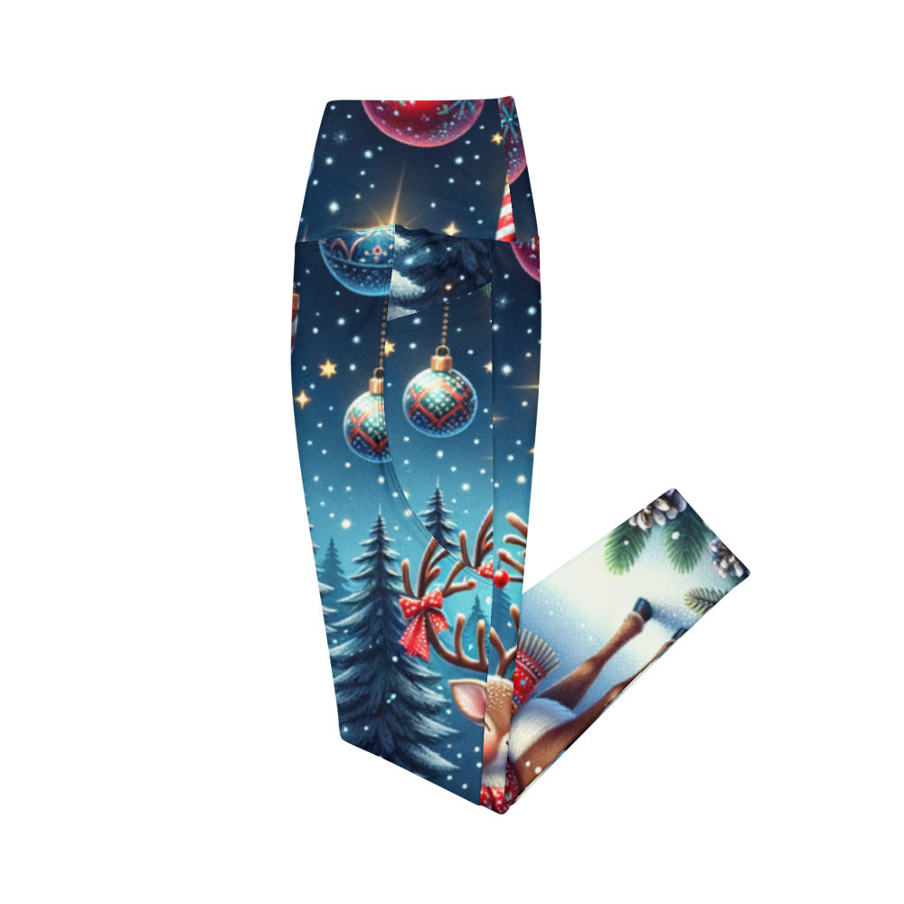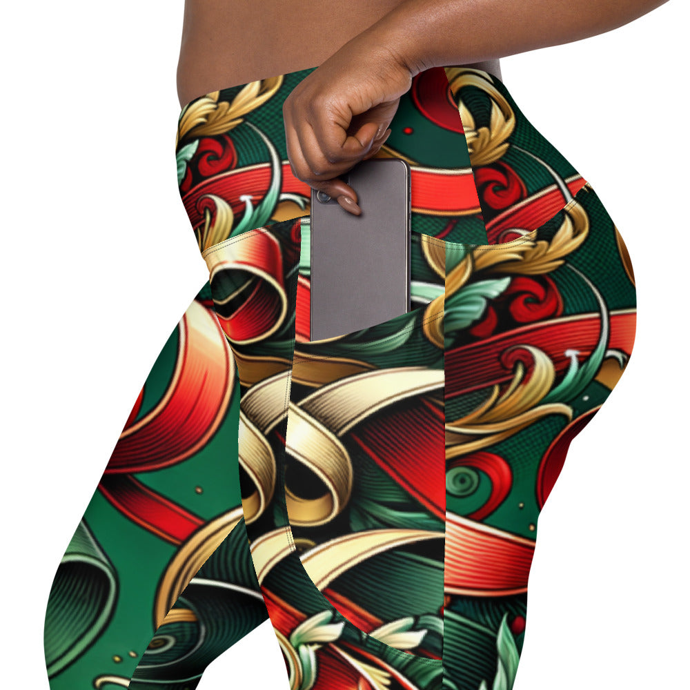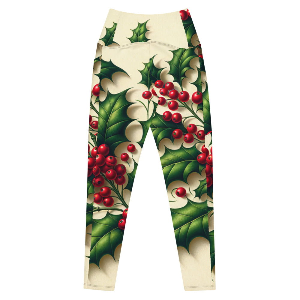 Whimsical Winter Wear Crossover Leggings with Pockets