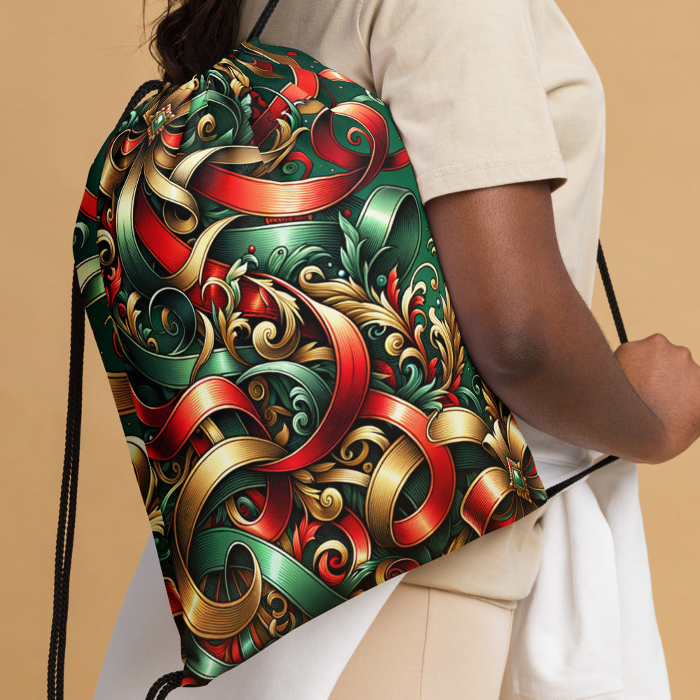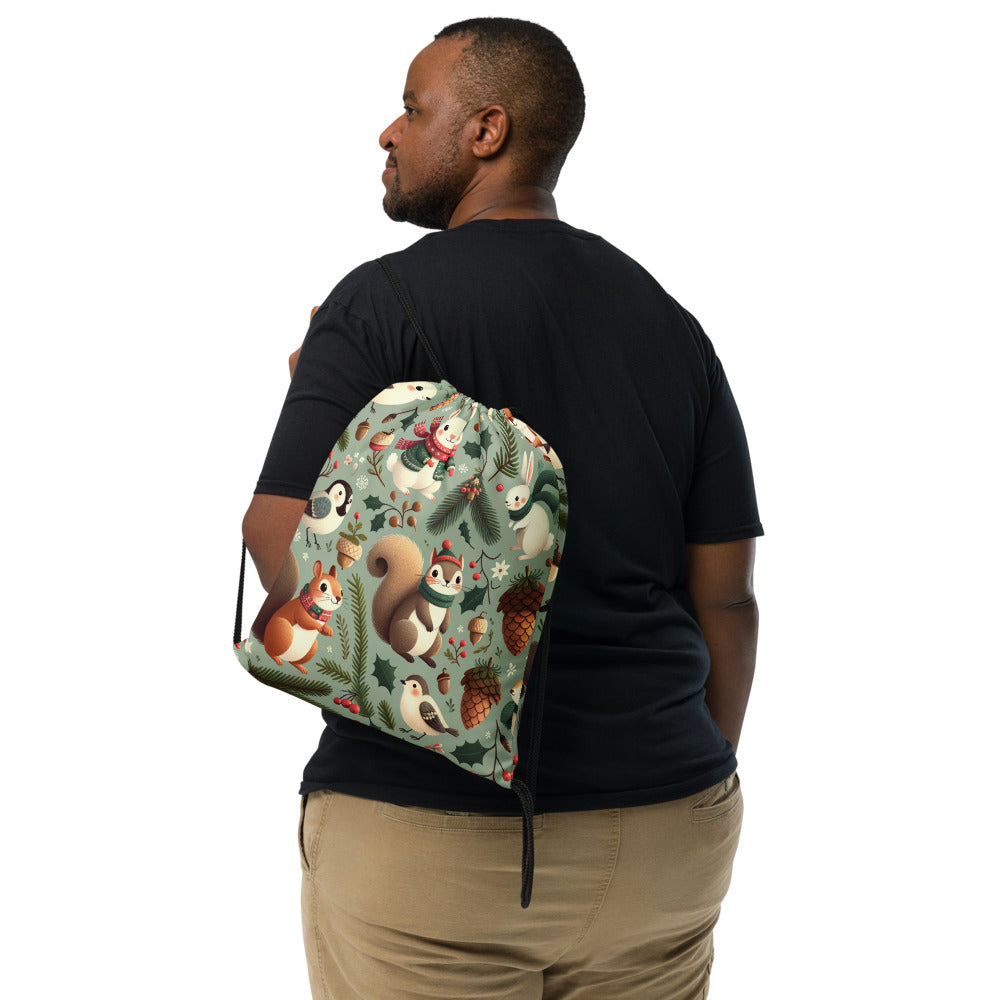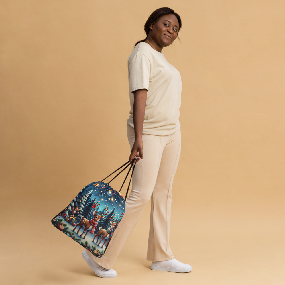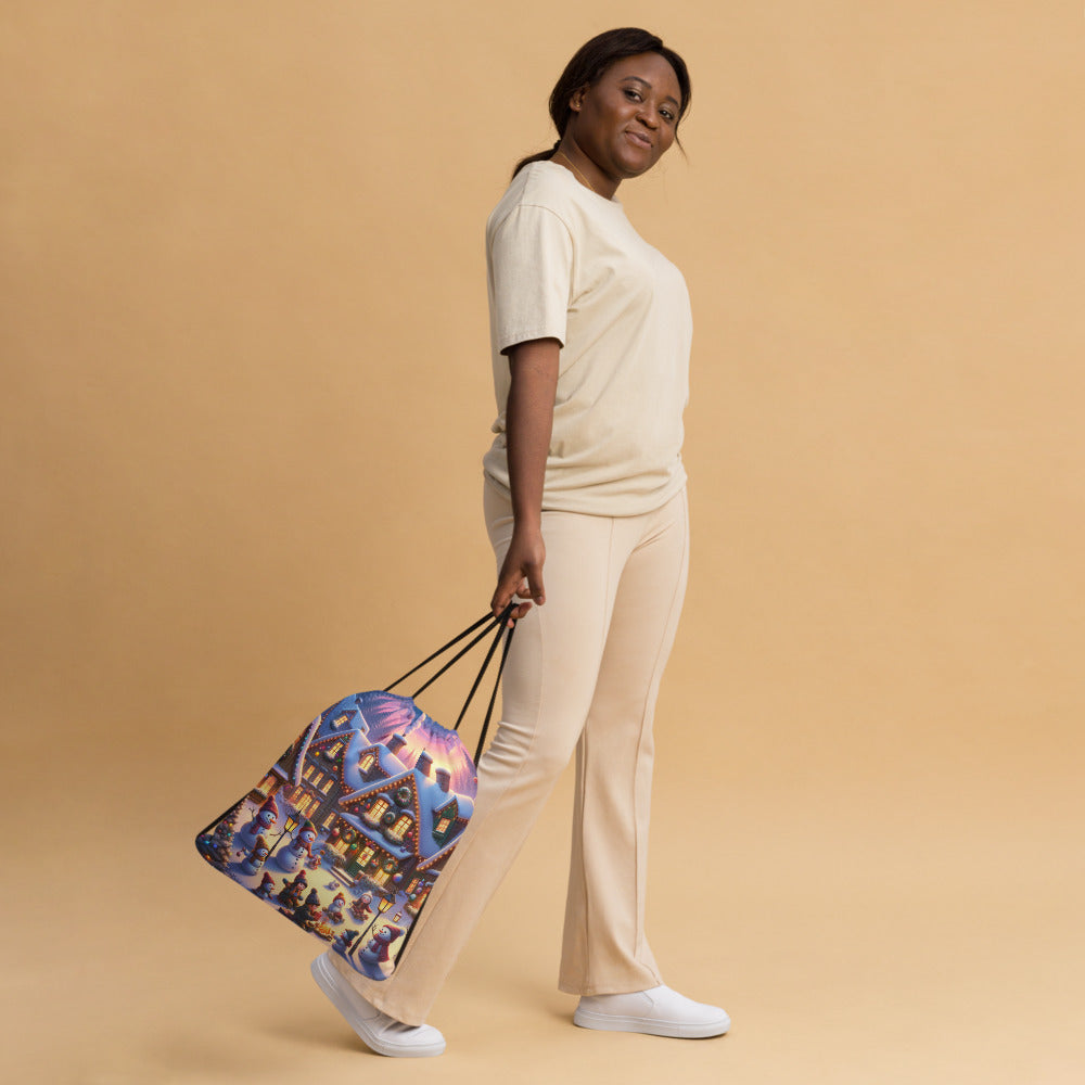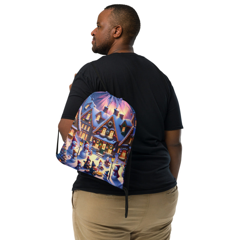 Embrace the festive spirit with our Whimsical Winter Wear collection and bring a touch of holiday cheer to your daily routine. Our Christmas drawstring bag seamlessly blends vibrant prints with a sporty style, making it a standout gym essential. Wear it comfortably as a backpack, featuring a practical drawstring closure at the top and slim, contrasting shoulder straps.