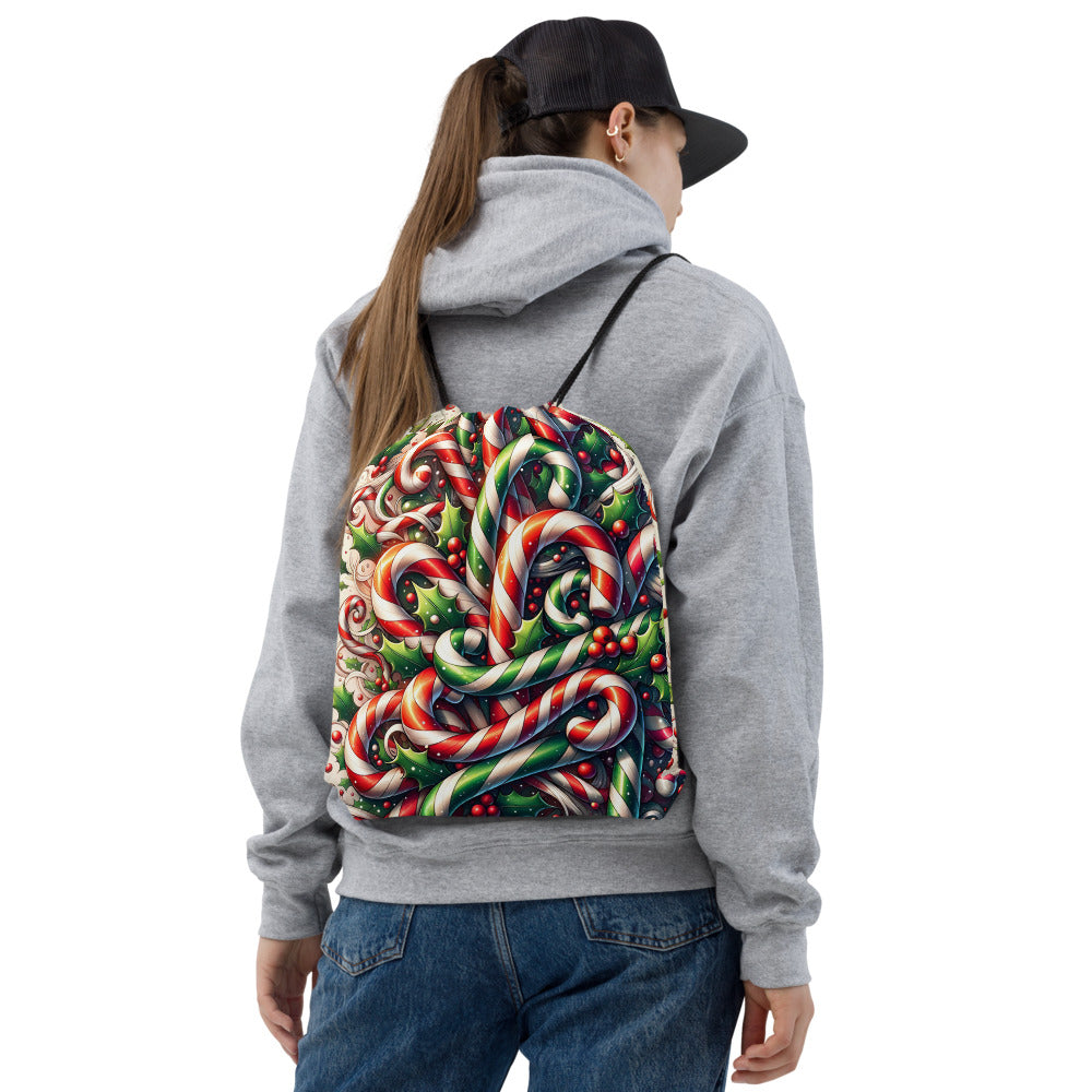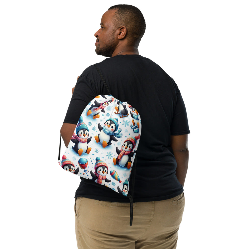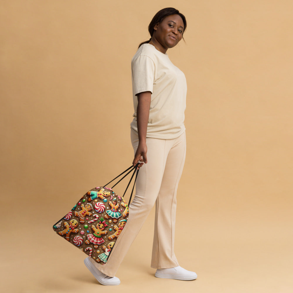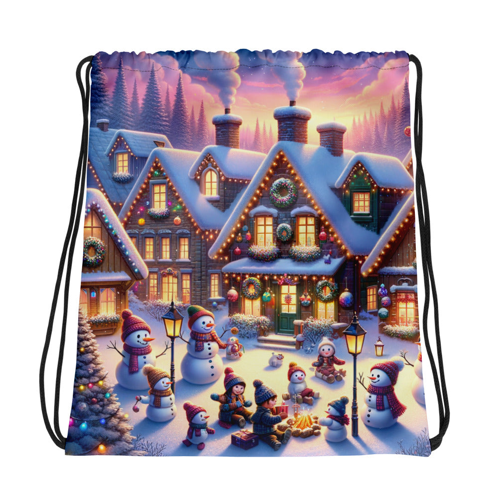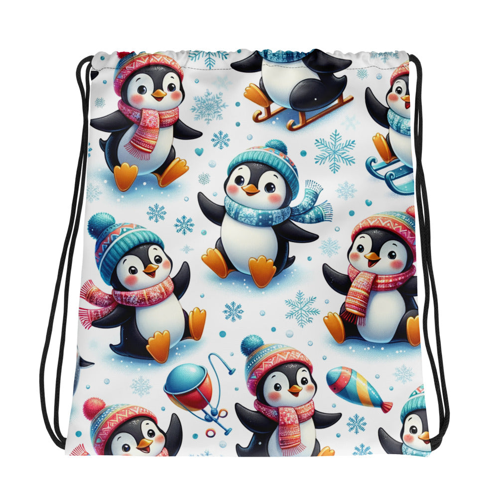 Embrace the festive spirit with our Whimsical Winter Wear collection and bring a touch of holiday cheer to your daily routine. Our Christmas drawstring bag seamlessly blends vibrant prints with a sporty style, making it a standout gym essential. Wear it comfortably as a backpack, featuring a practical drawstring closure at the top and slim, contrasting shoulder straps.