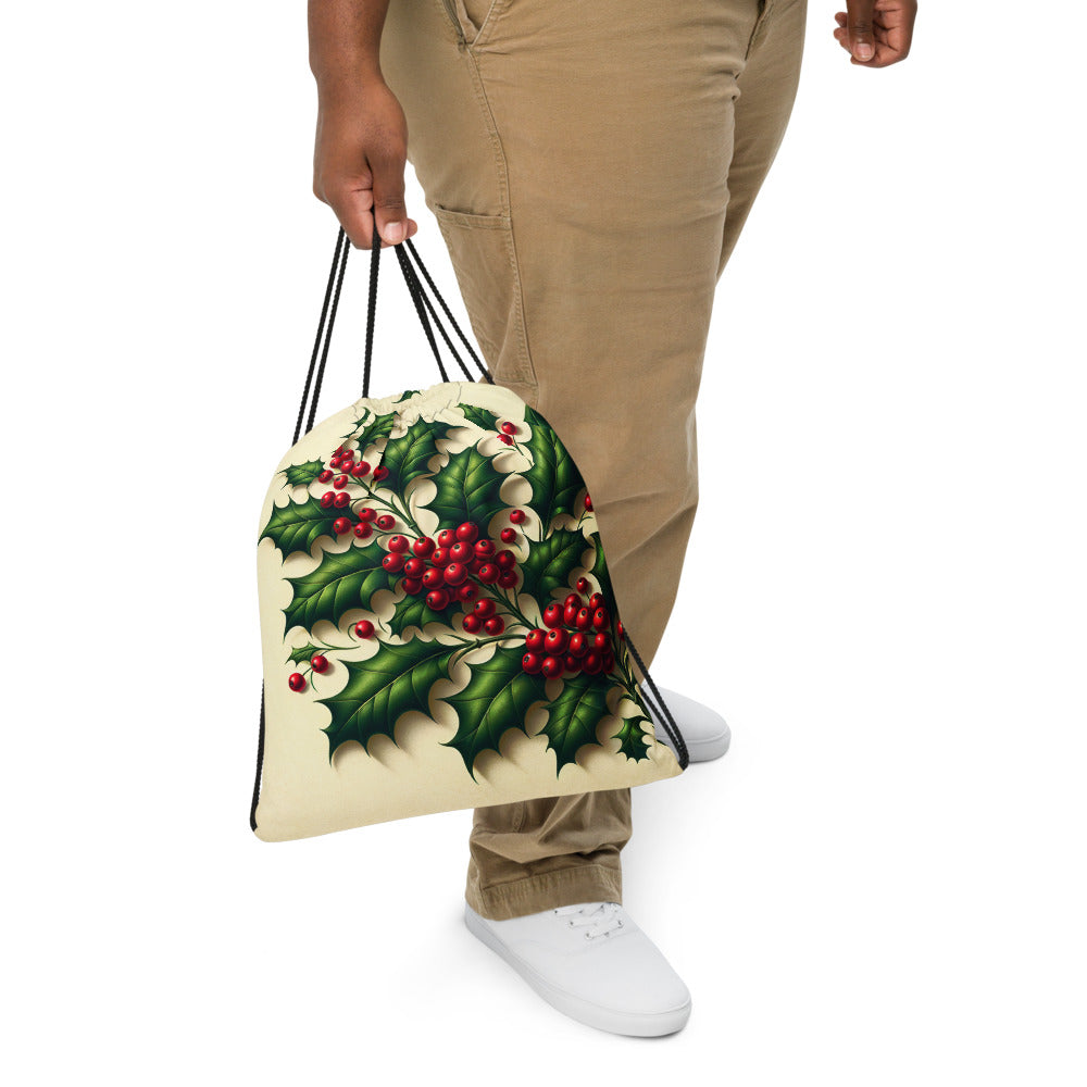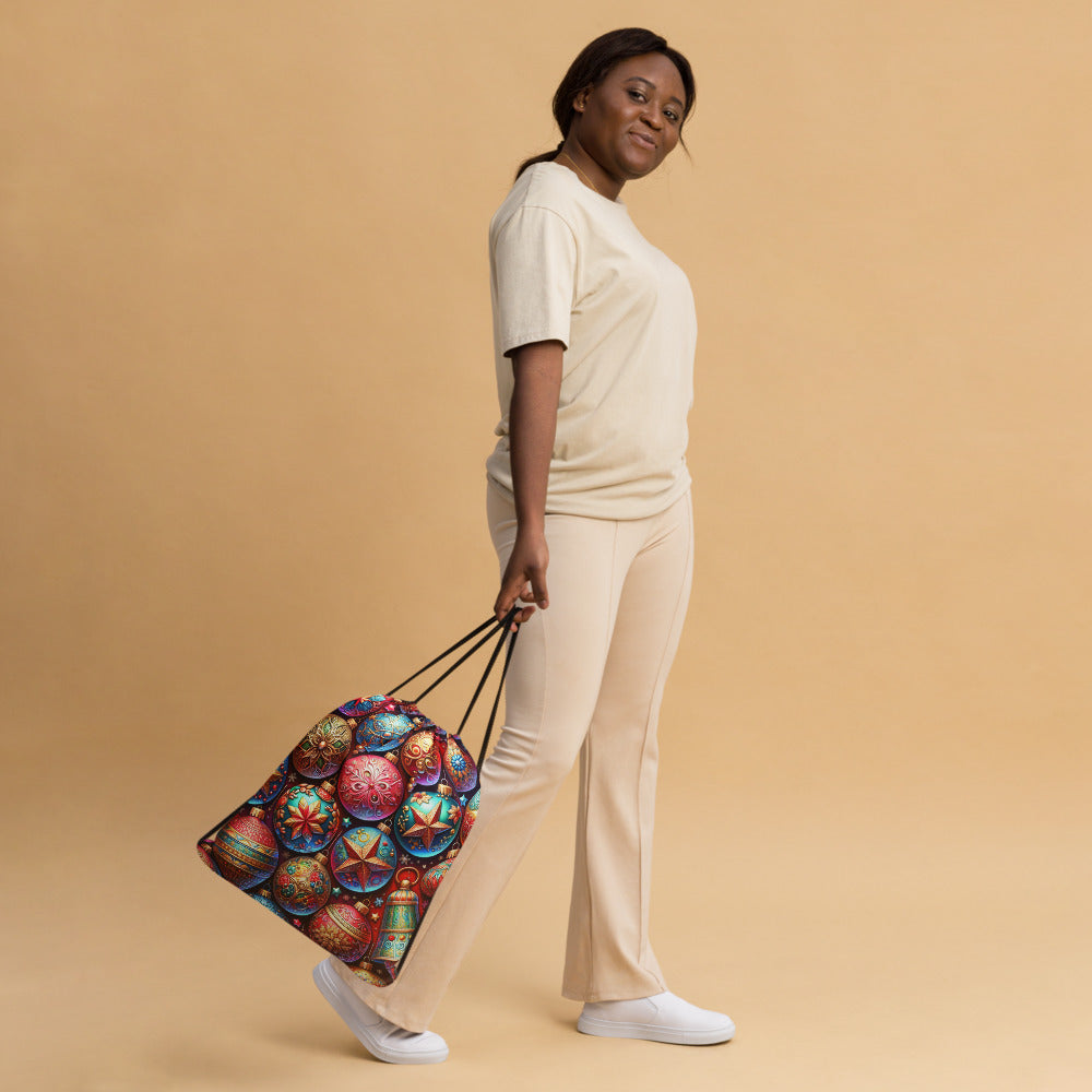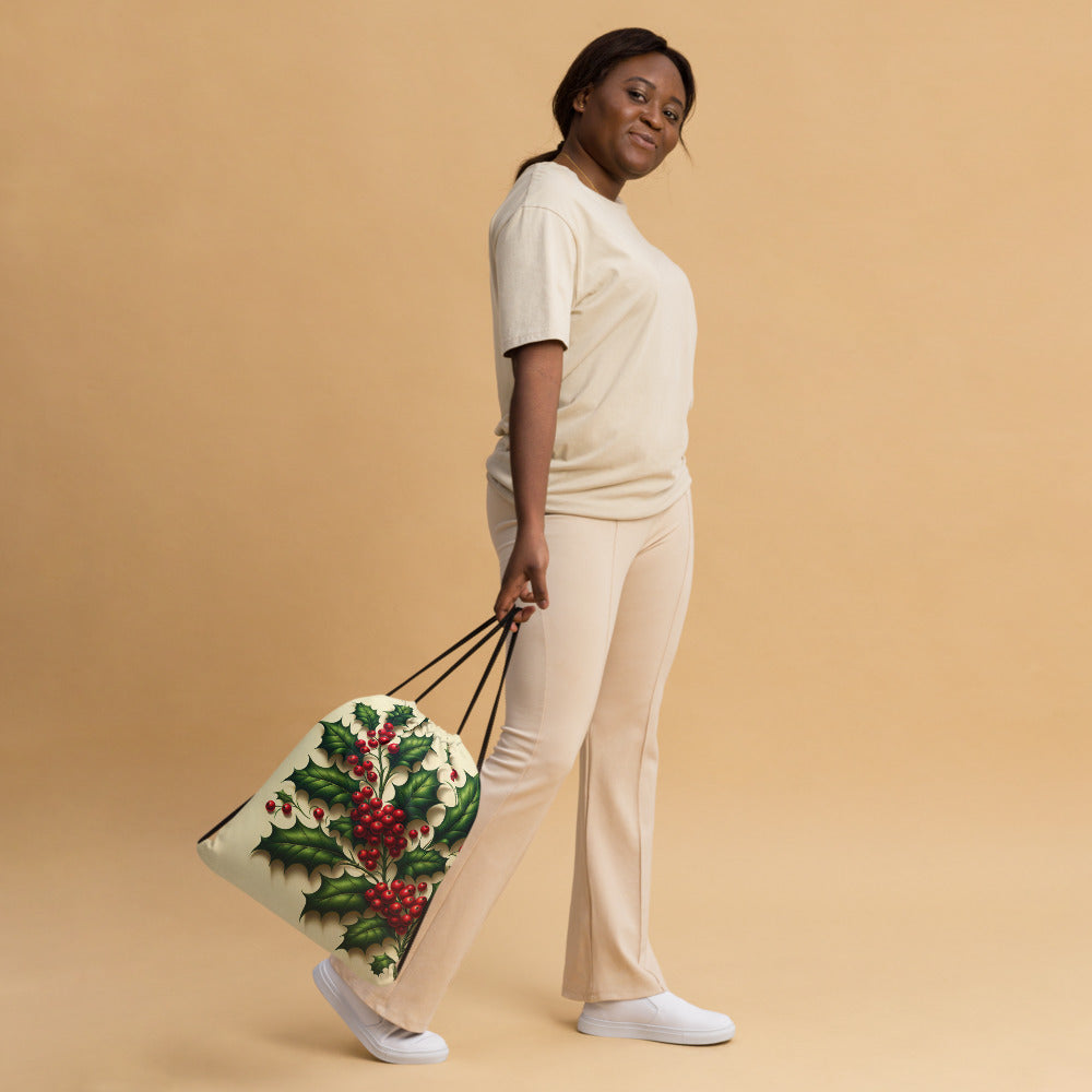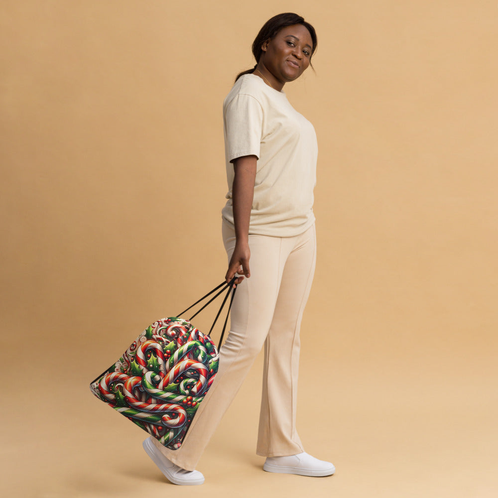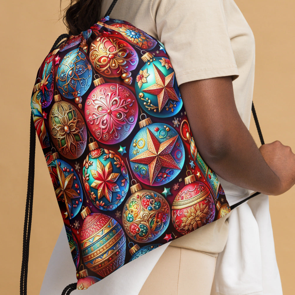 Embrace the festive spirit with our Whimsical Winter Wear collection and bring a touch of holiday cheer to your daily routine. Our Christmas drawstring bag seamlessly blends vibrant prints with a sporty style, making it a standout gym essential. Wear it comfortably as a backpack, featuring a practical drawstring closure at the top and slim, contrasting shoulder straps.
