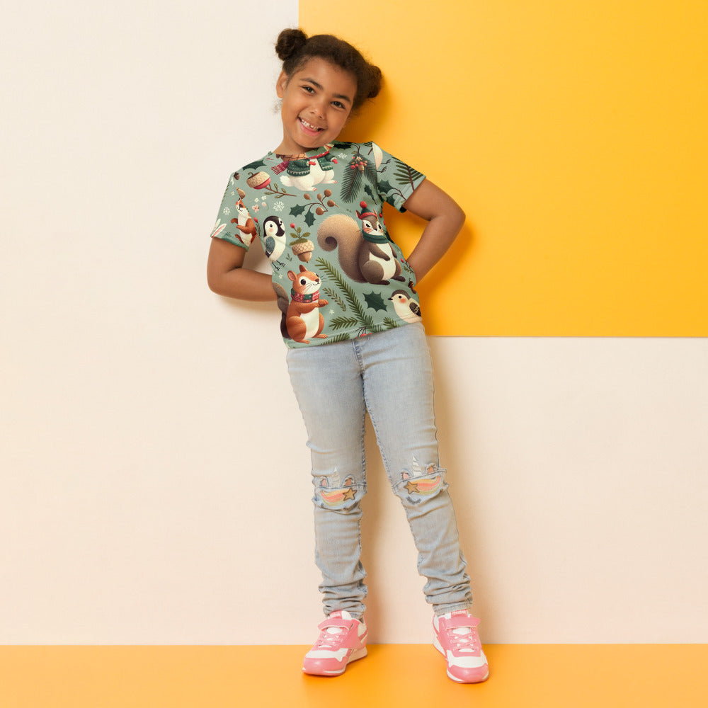Whimsical Winter Wear Kids Crew Neck T-Shirt