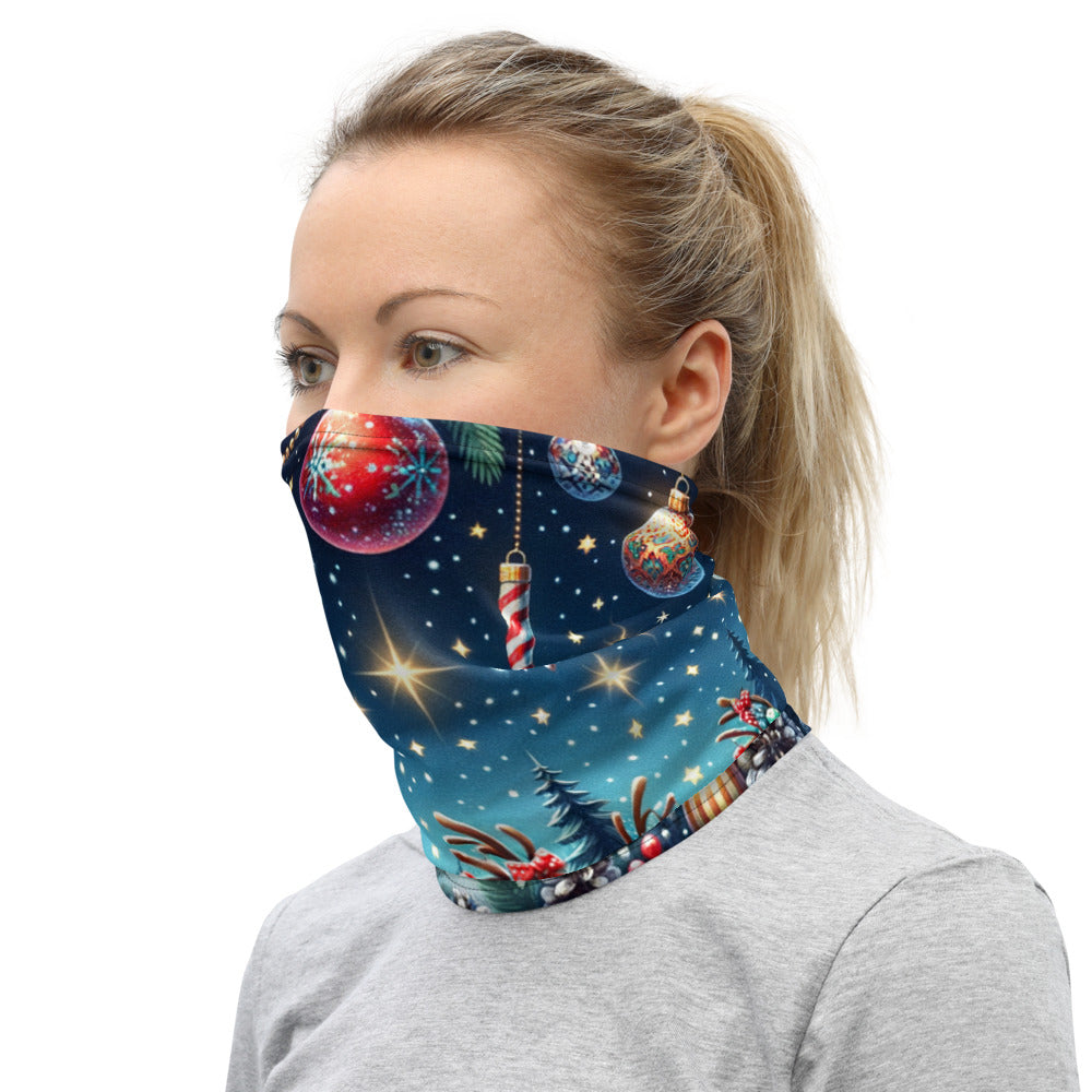 Introducing the Whimsical Winter Wear neck gaiter—your ultimate versatile accessory. Perfect for the Christmas season, this neck gaiter can be transformed into a face covering, headband, bandana, wristband, and neck warmer, making it the ideal companion for your holiday wardrobe. Upgrade your accessory game and ensure every outfit has a matching face shield.