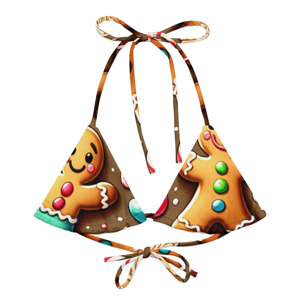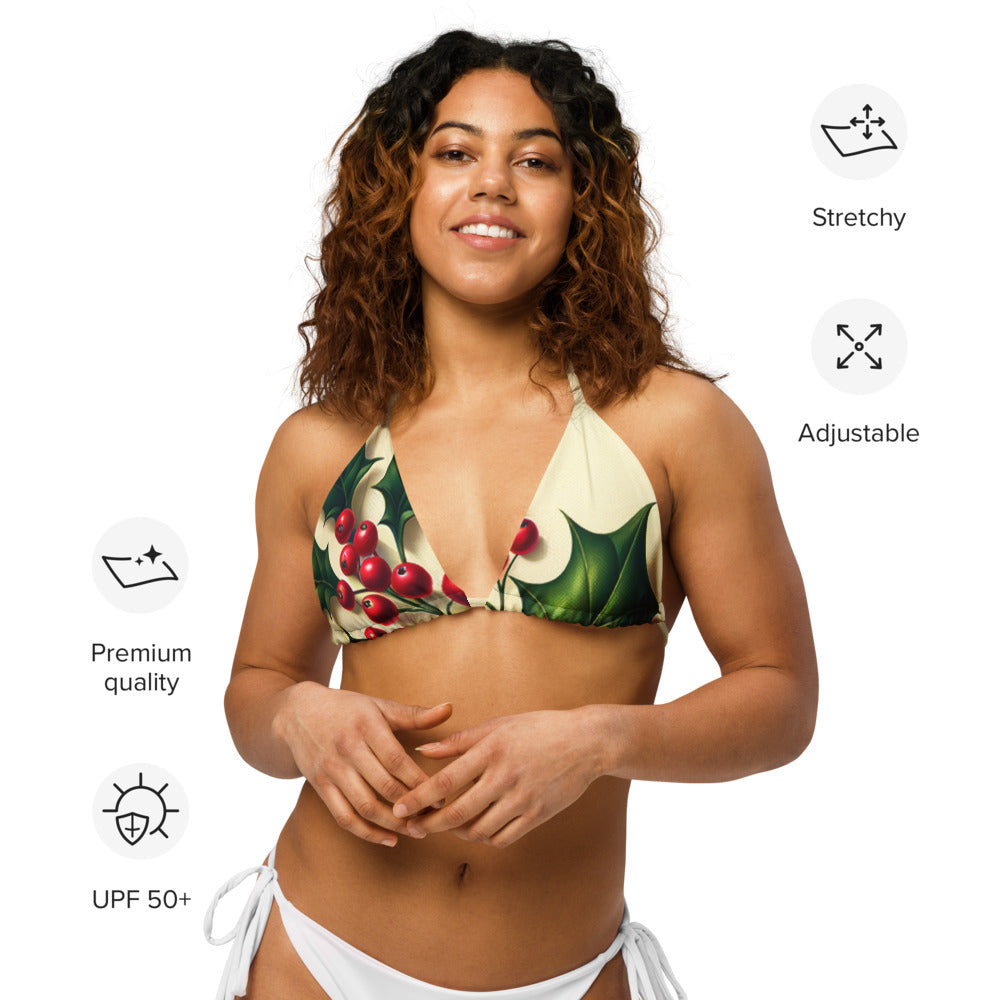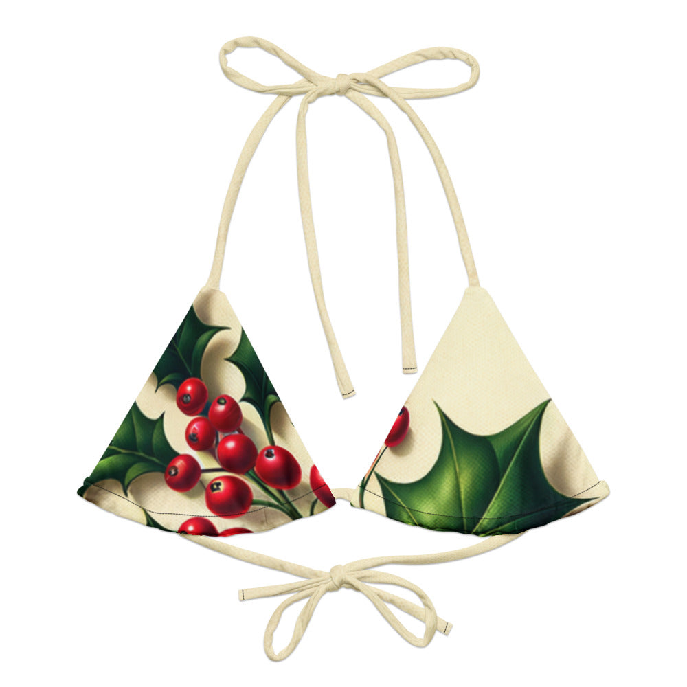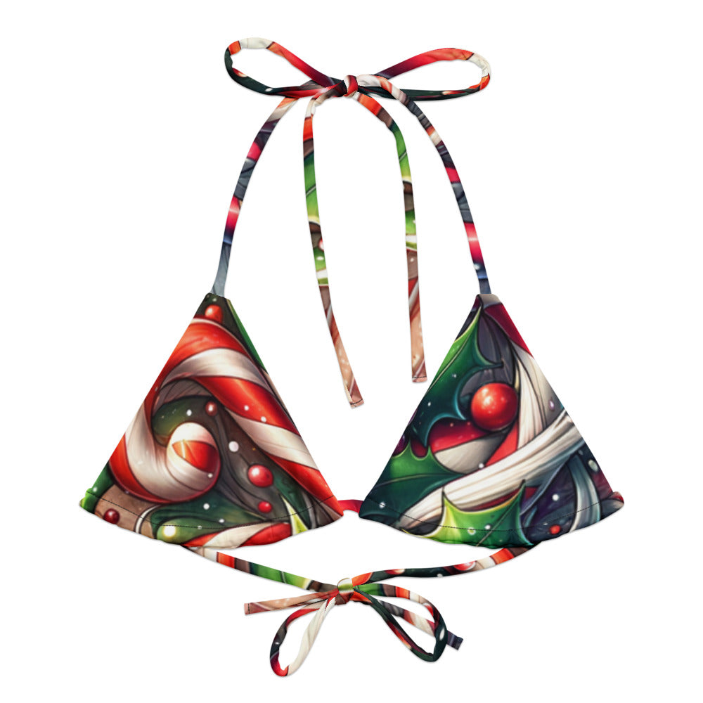 Celebrate the Christmas season with Whimsical Winter Wear's eco-friendly Recycled Padded String Bikini Top. Crafted with care from soft recycled polyester, this bikini top not only offers a sustainable choice but ensures sun protection with UPF 50+. Its adaptable, stretchy straps allow for versatile styling, making it a must-have for your holiday swim collection. Don’t wait, pair it with your favorite swimwear ensemble today!