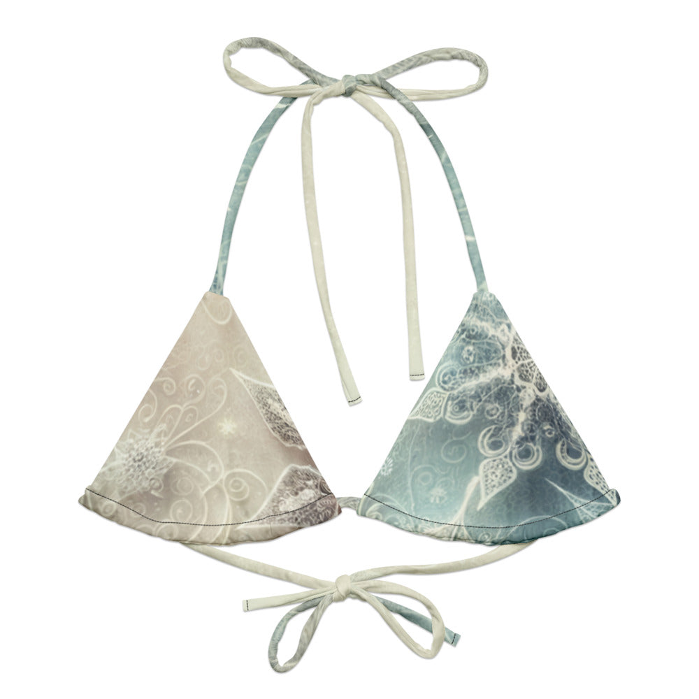To extend the life of your Recycled String Bikini Top, rinse thoroughly after each use to remove chlorine or salt residues.