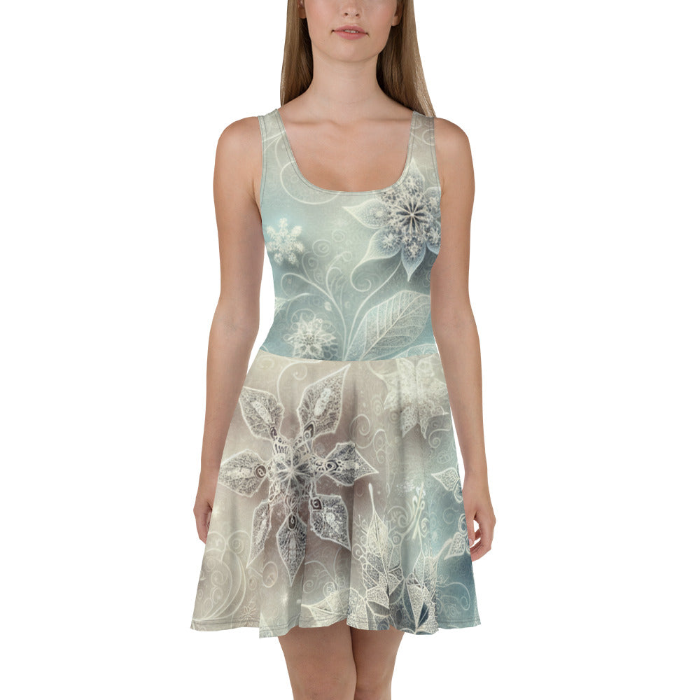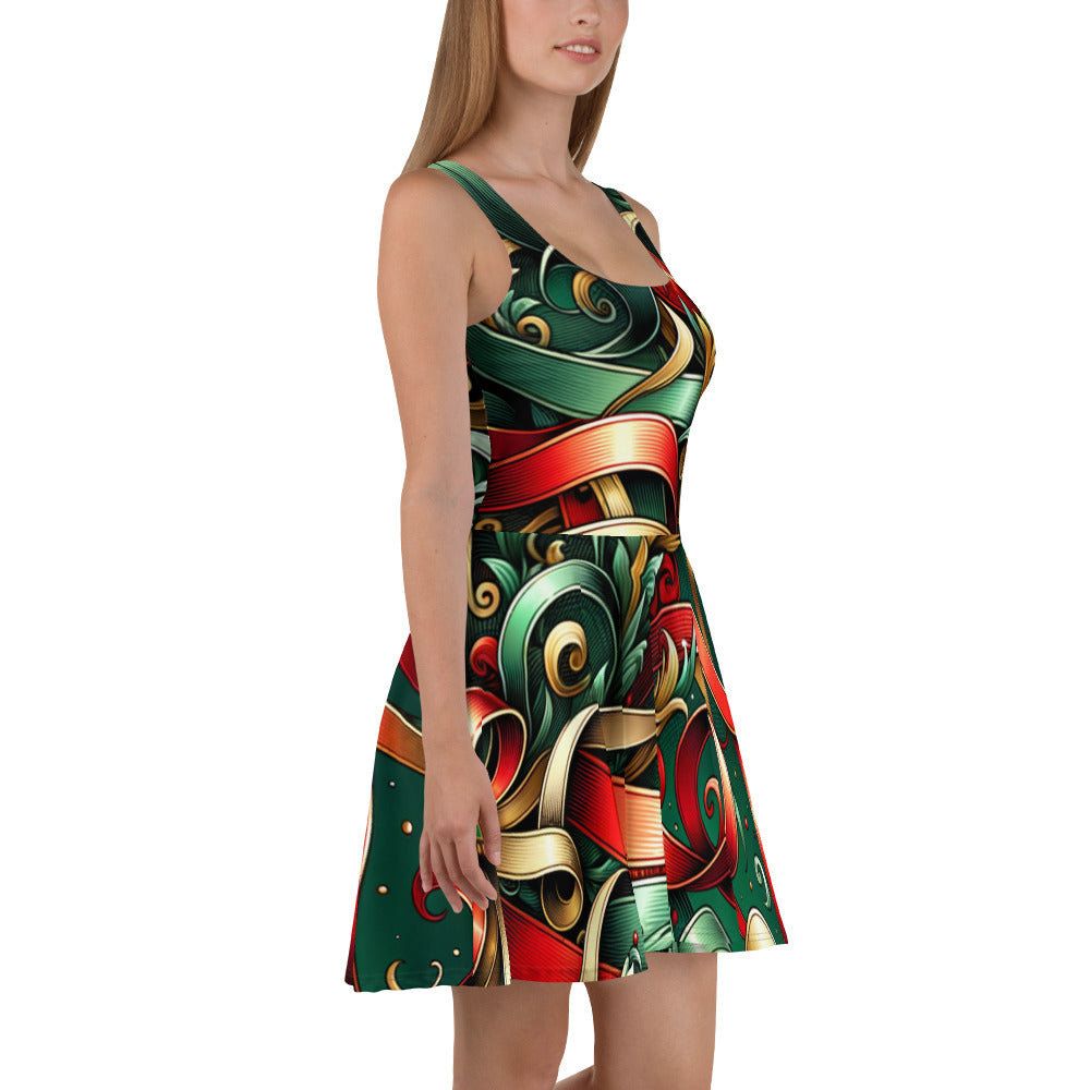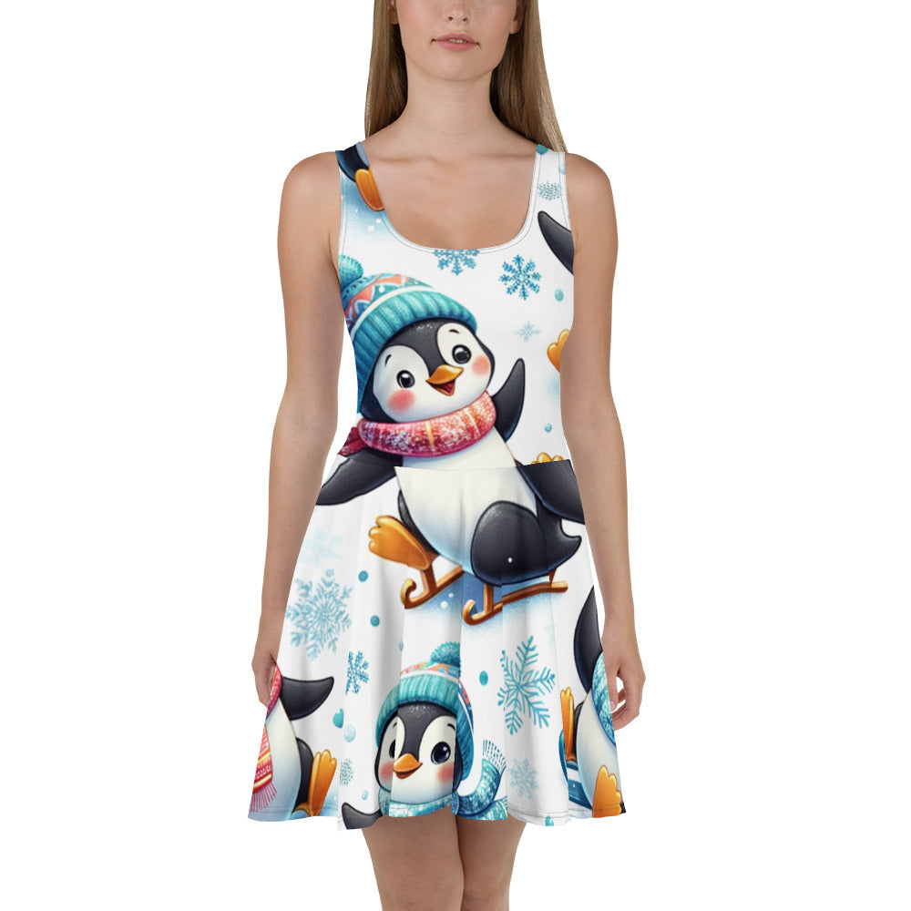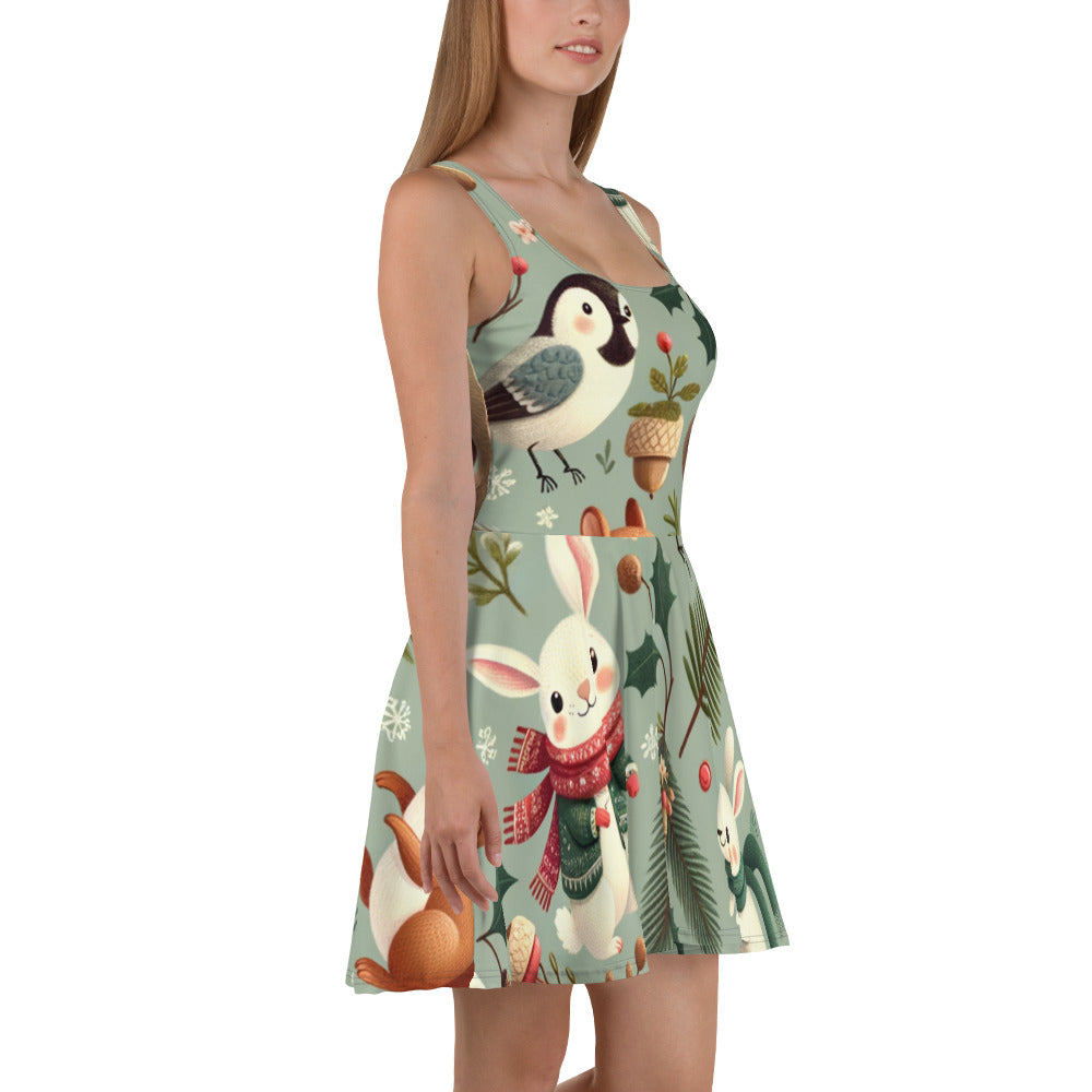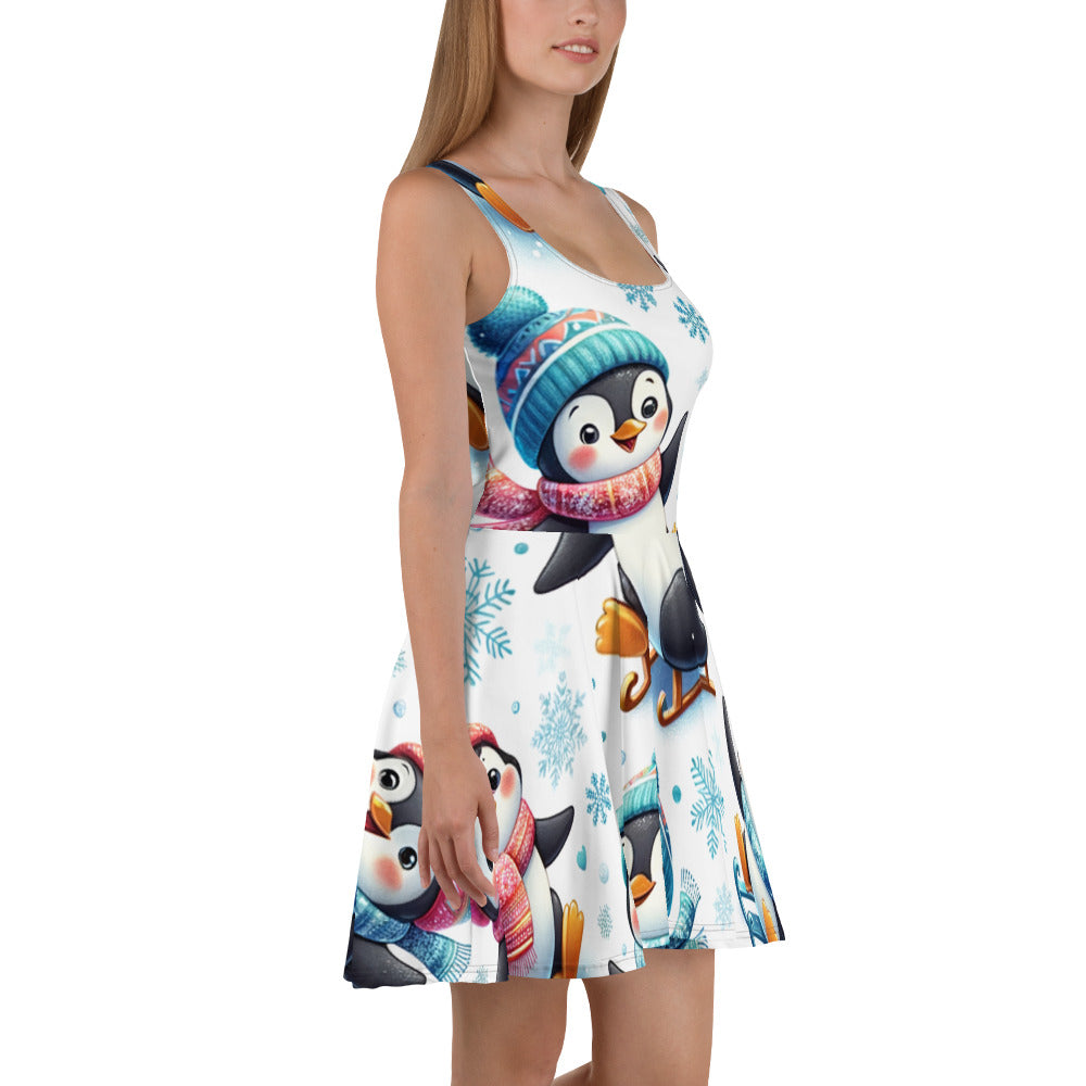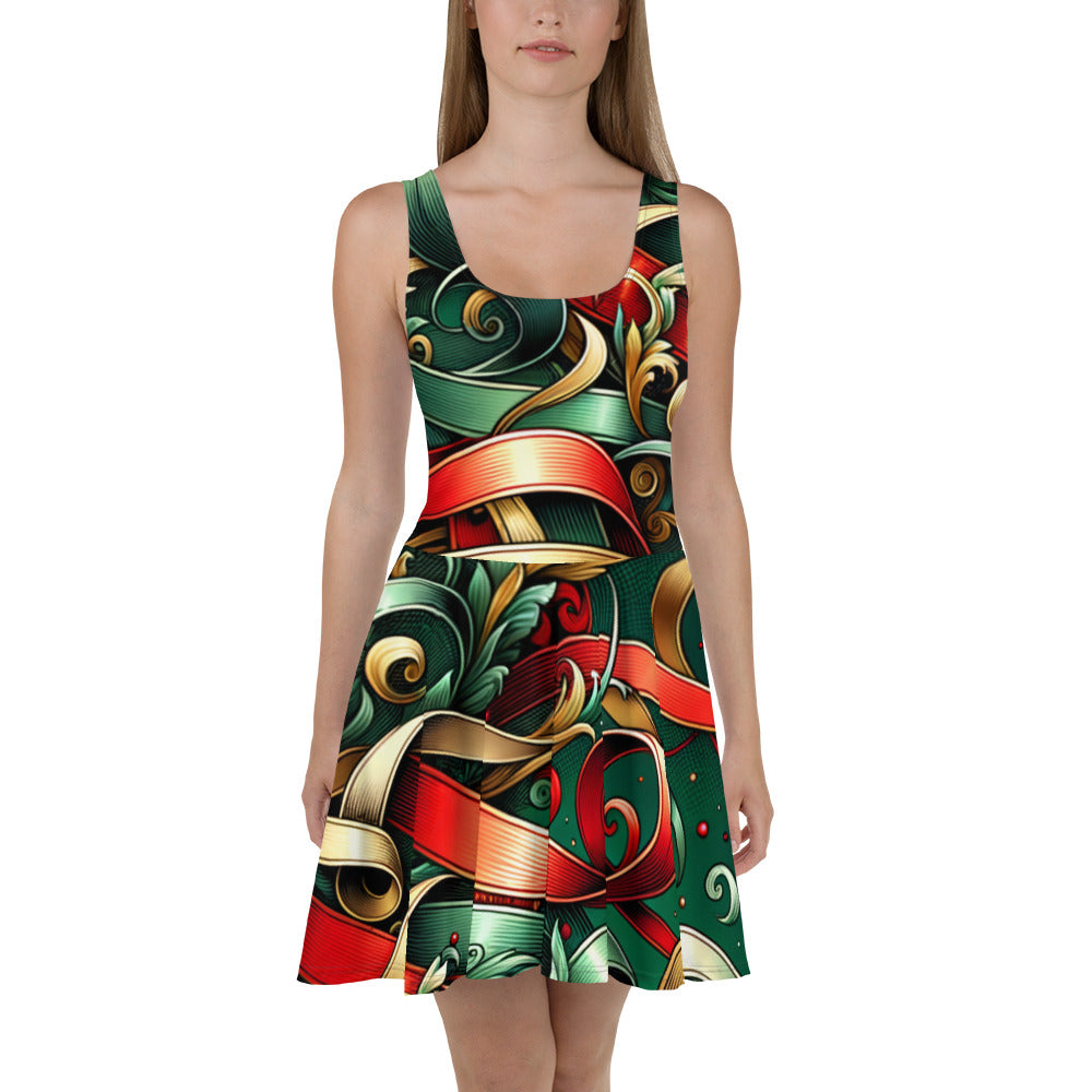 Immerse yourself in the festive spirit with our enchanting Whimsical Winter Wear collection. Designed specially for Christmas celebrations, this sleeveless skater dress ensures you dress to impress with its elegant charm. The soft, smooth fabric paired with a flared skirt creates a vibrant and sophisticated look that highlights its exquisite design.