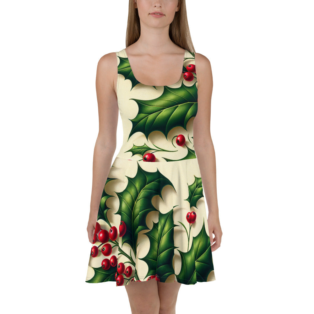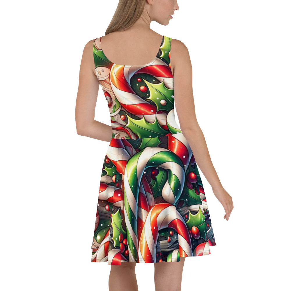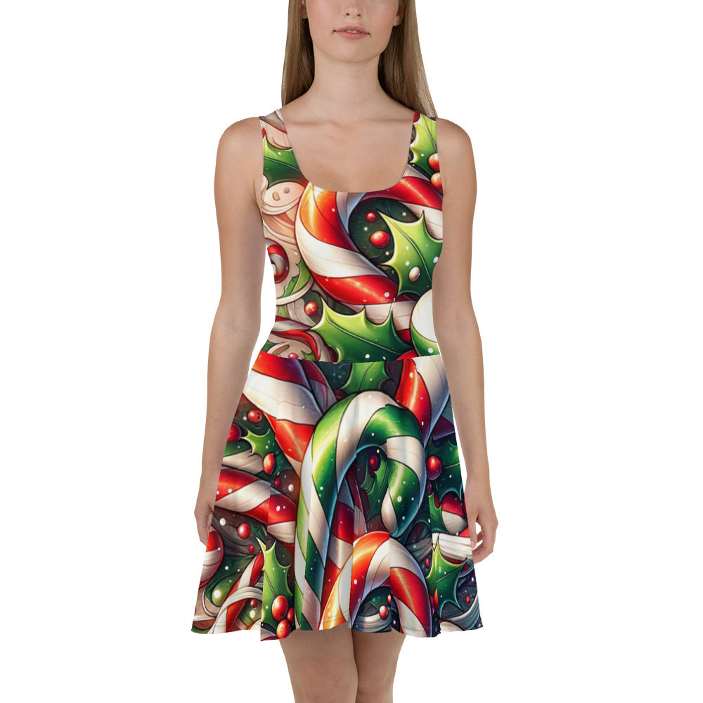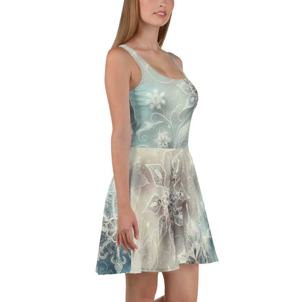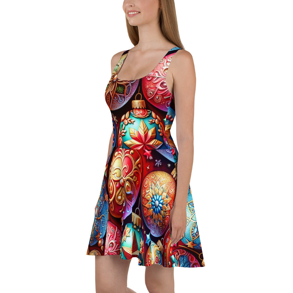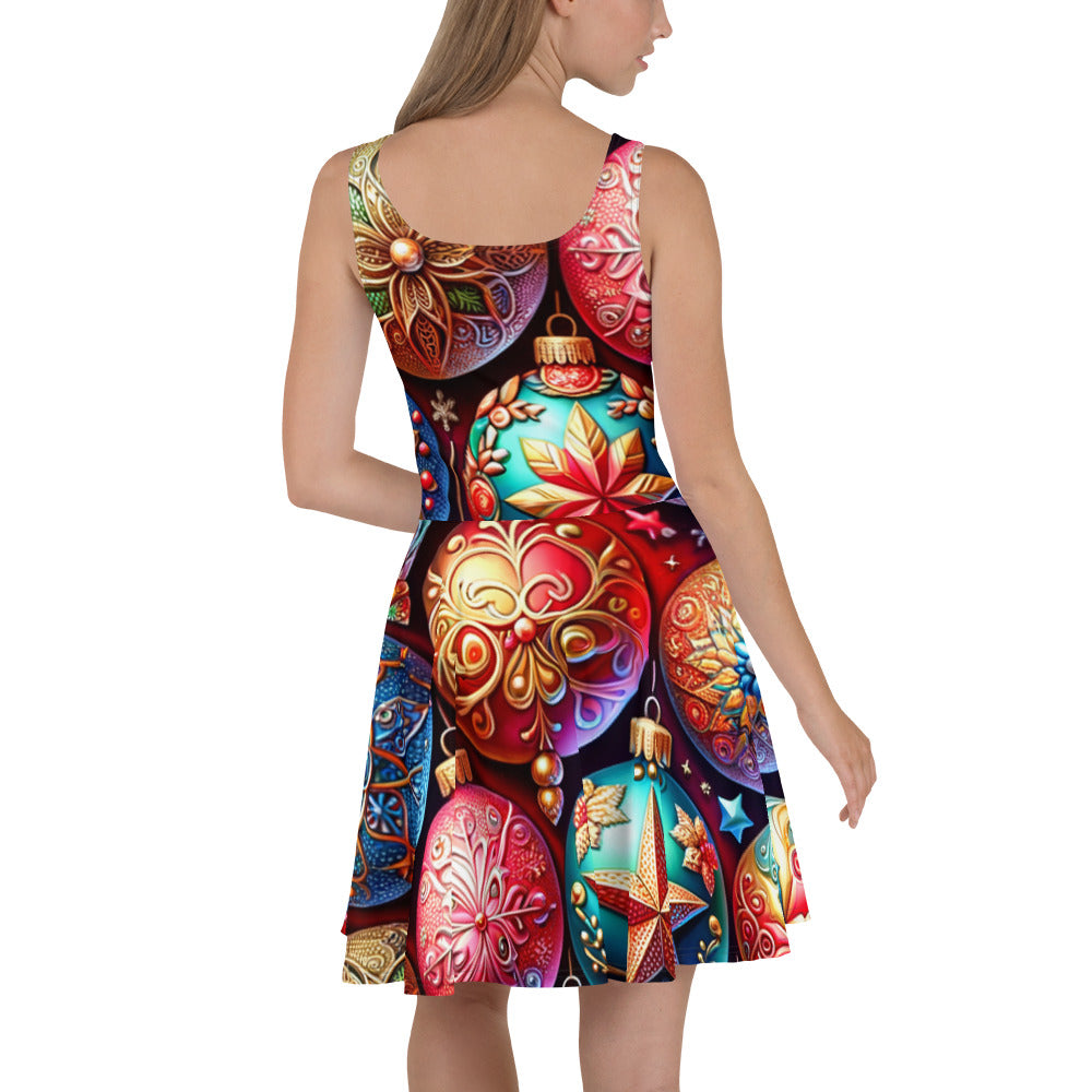 Immerse yourself in the festive spirit with our enchanting Whimsical Winter Wear collection. Designed specially for Christmas celebrations, this sleeveless skater dress ensures you dress to impress with its elegant charm. The soft, smooth fabric paired with a flared skirt creates a vibrant and sophisticated look that highlights its exquisite design.