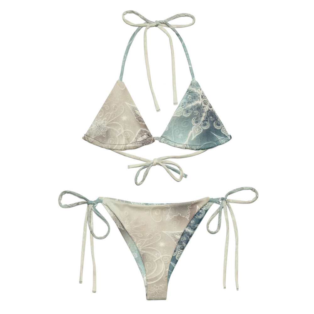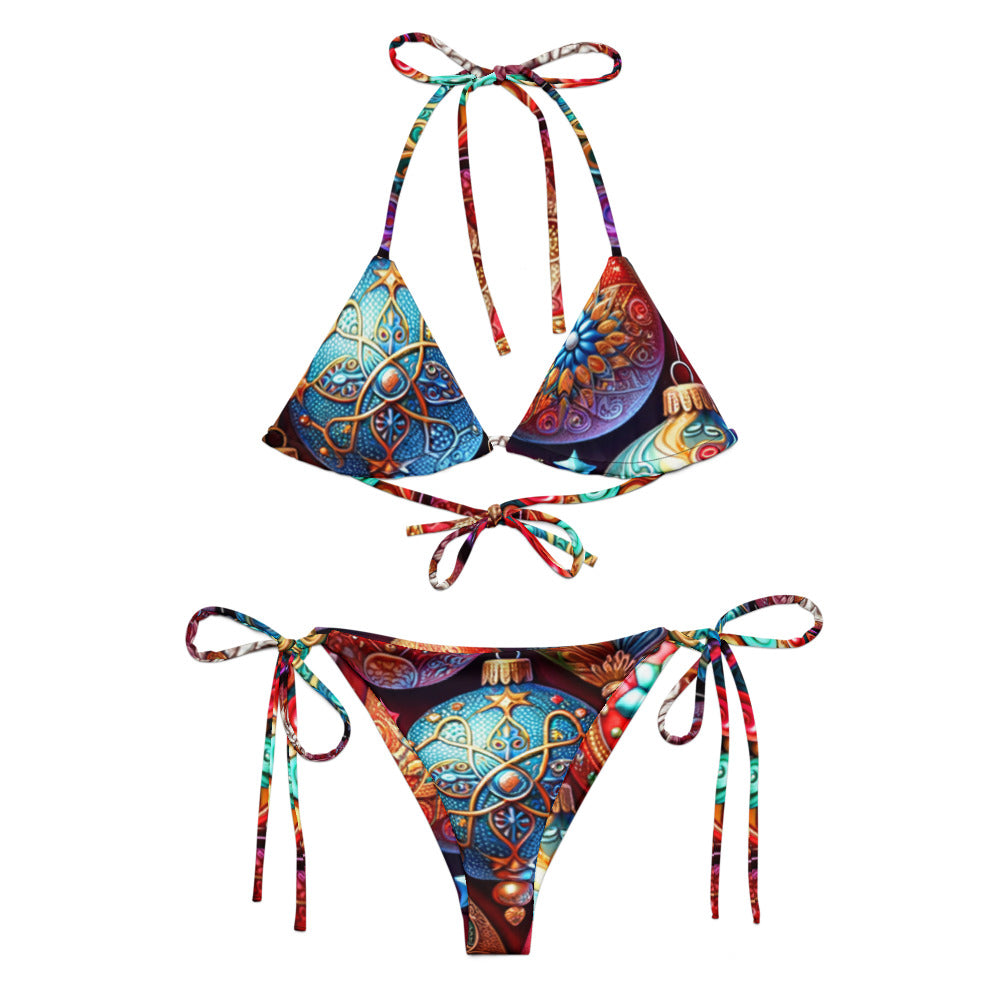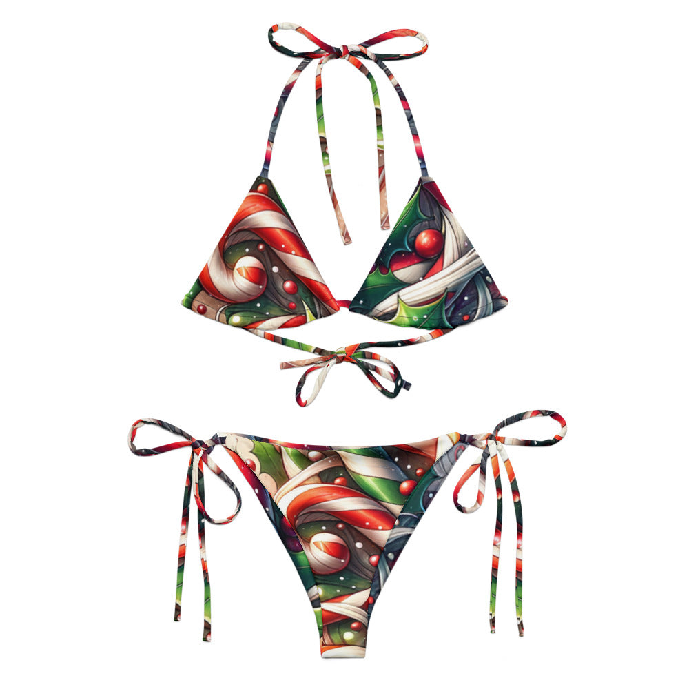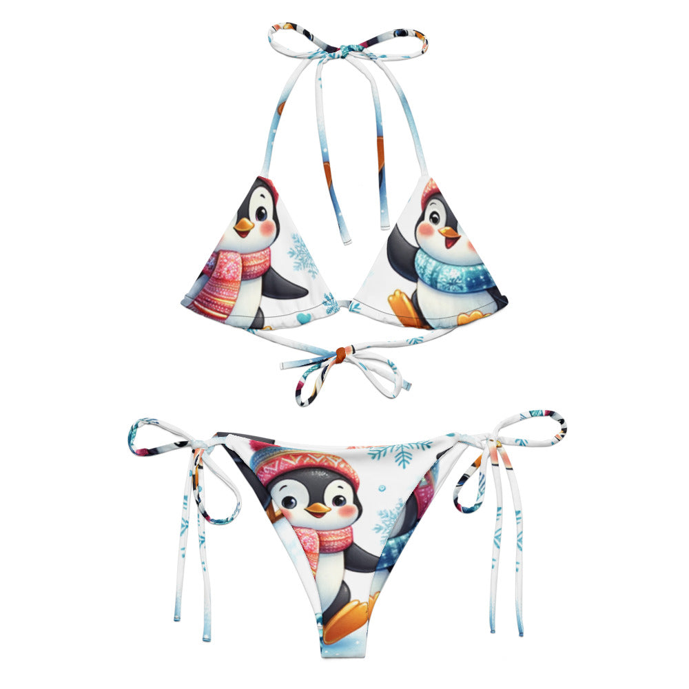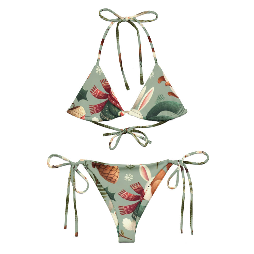 Embrace comfort and style this summer with the Whimsical Winter Wear Recycled String Bikini set. Crafted from soft recycled polyester, this bikini provides double-layering and UPF 50+ protection. Customize the strap style to your liking and prepare for a delightful swim!
