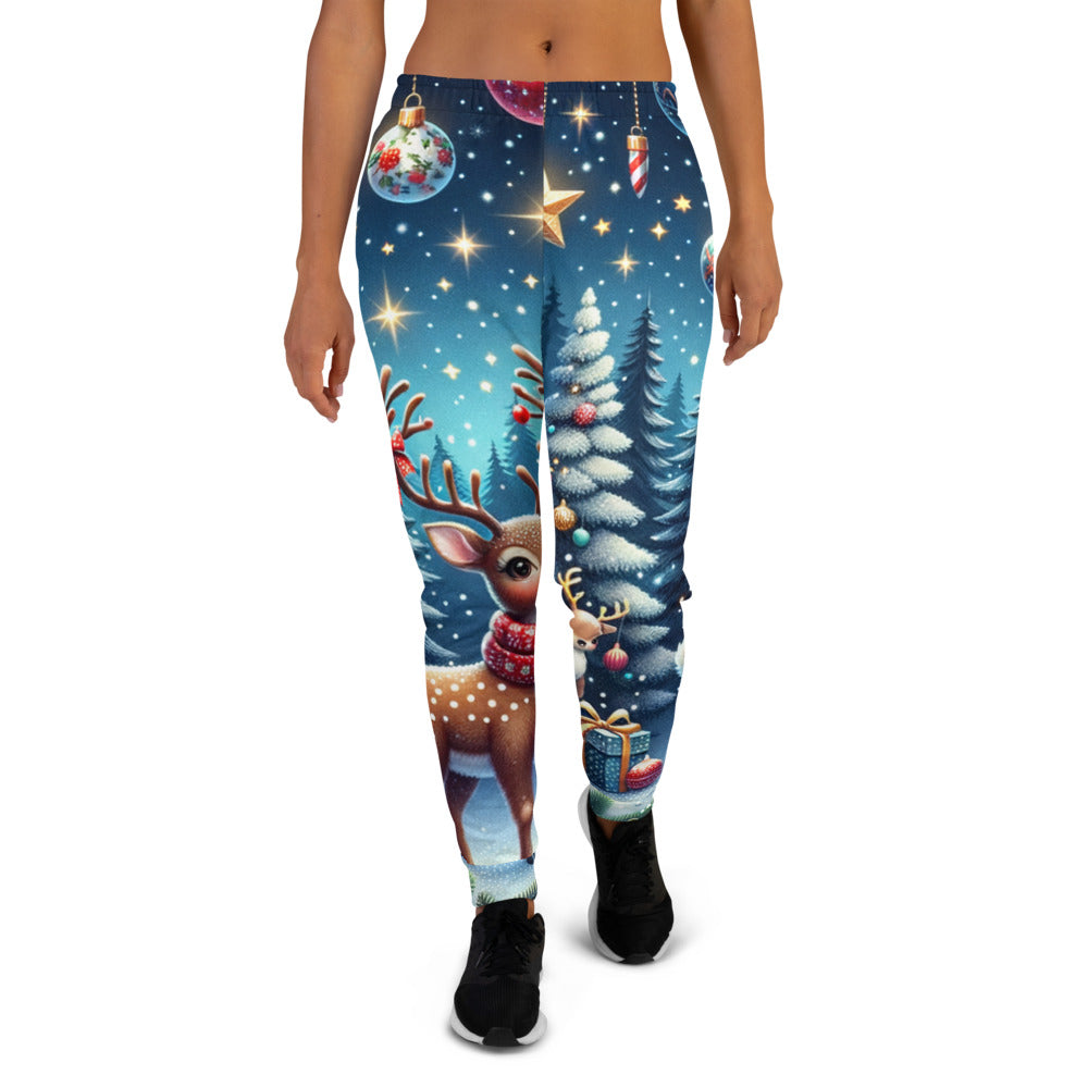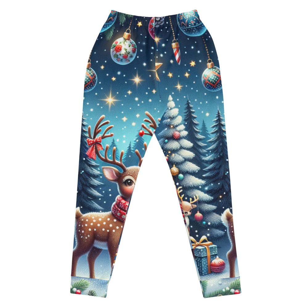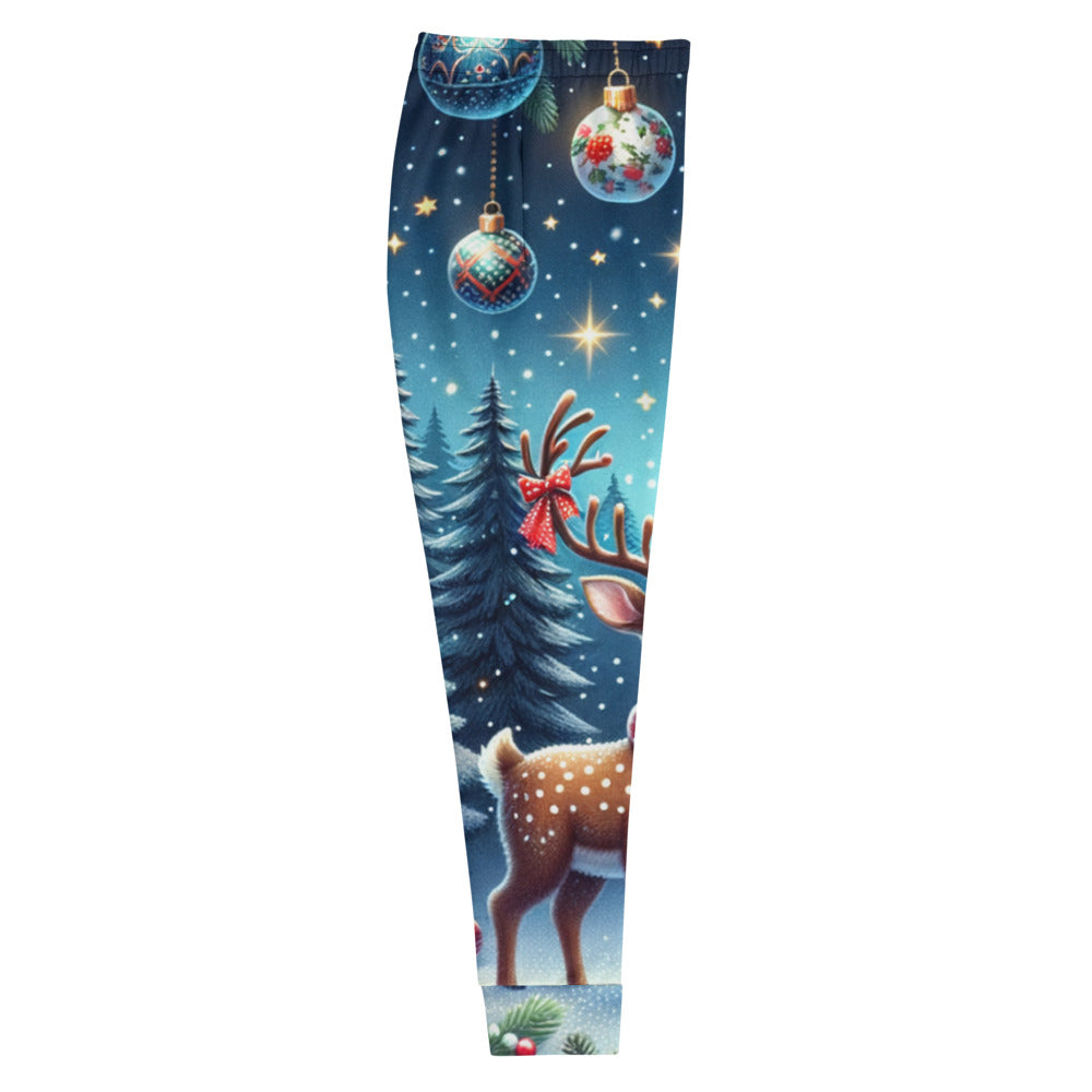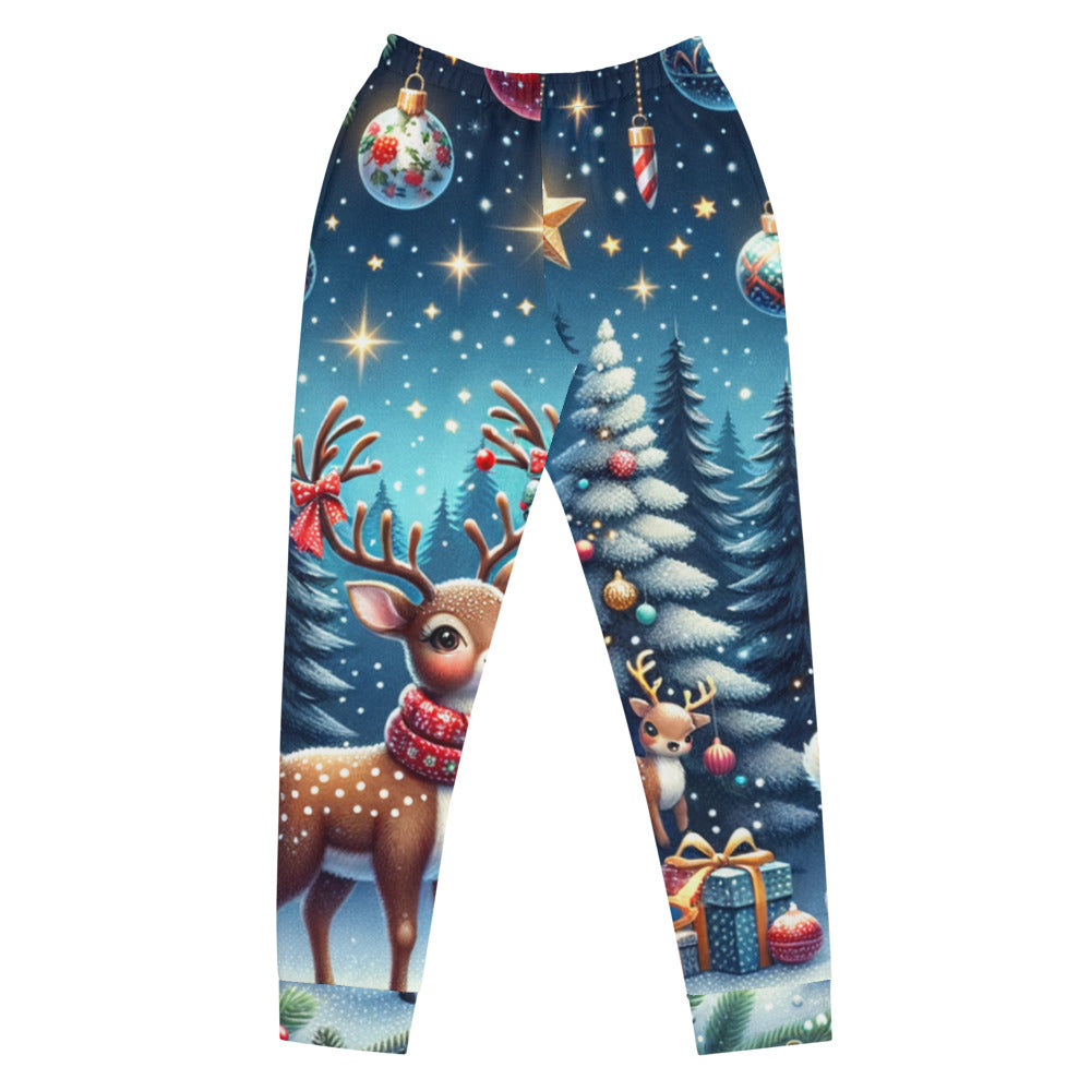 Congratulations, you've discovered your next favorite sweatpants! Embrace the cozy magic of the Whimsical Winter Wear collection, perfect for the festive Christmas season. These joggers, crafted from a recycled polyester and spandex blend, offer a luxuriously soft feel and a vibrant print that resists fading, ensuring long-lasting enjoyment.